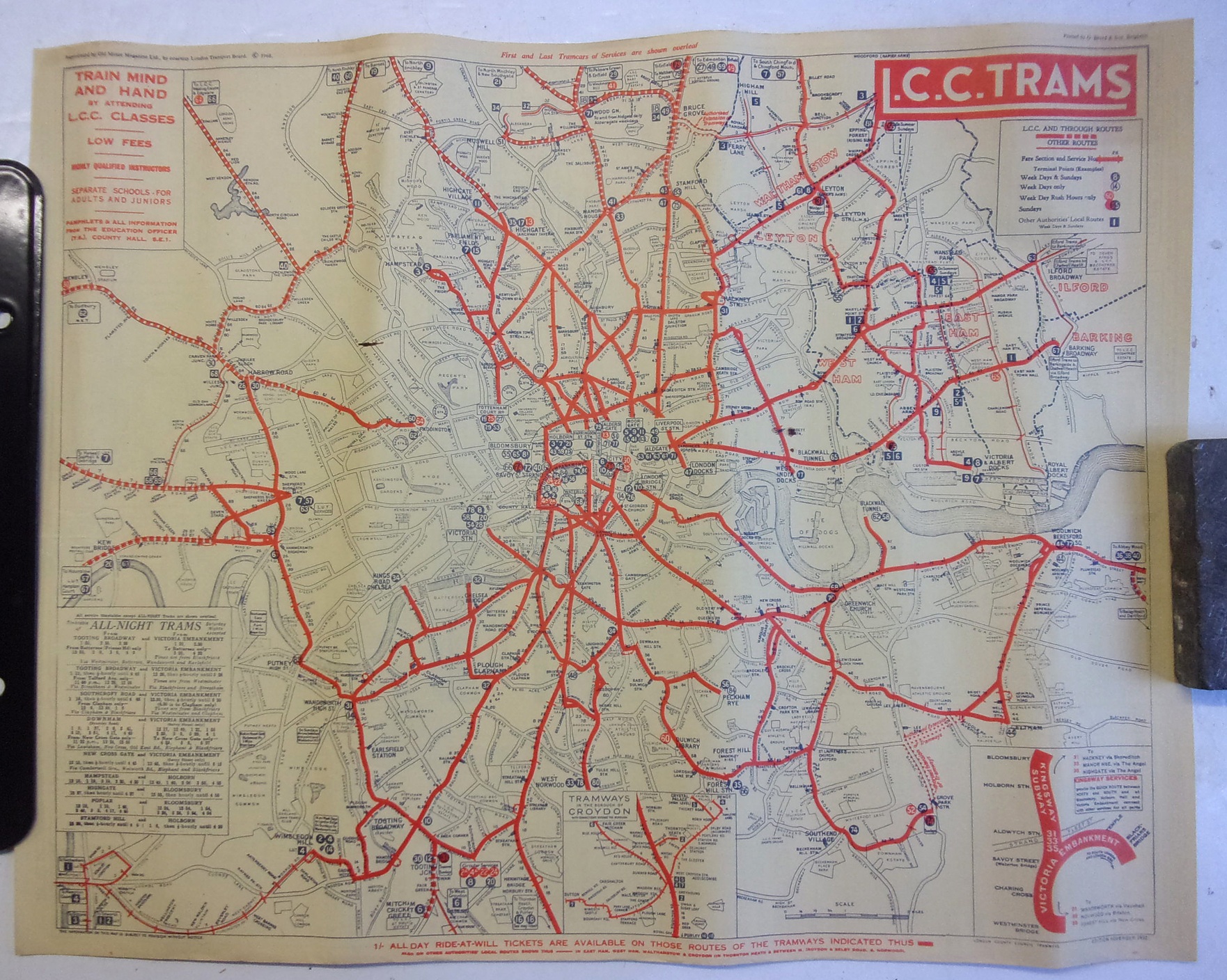 2 x Double sided paper maps, one of LCC Trams and one of General LT Map, accompanied by Map on thin card. “The Underground”. ( 4 x image to view).