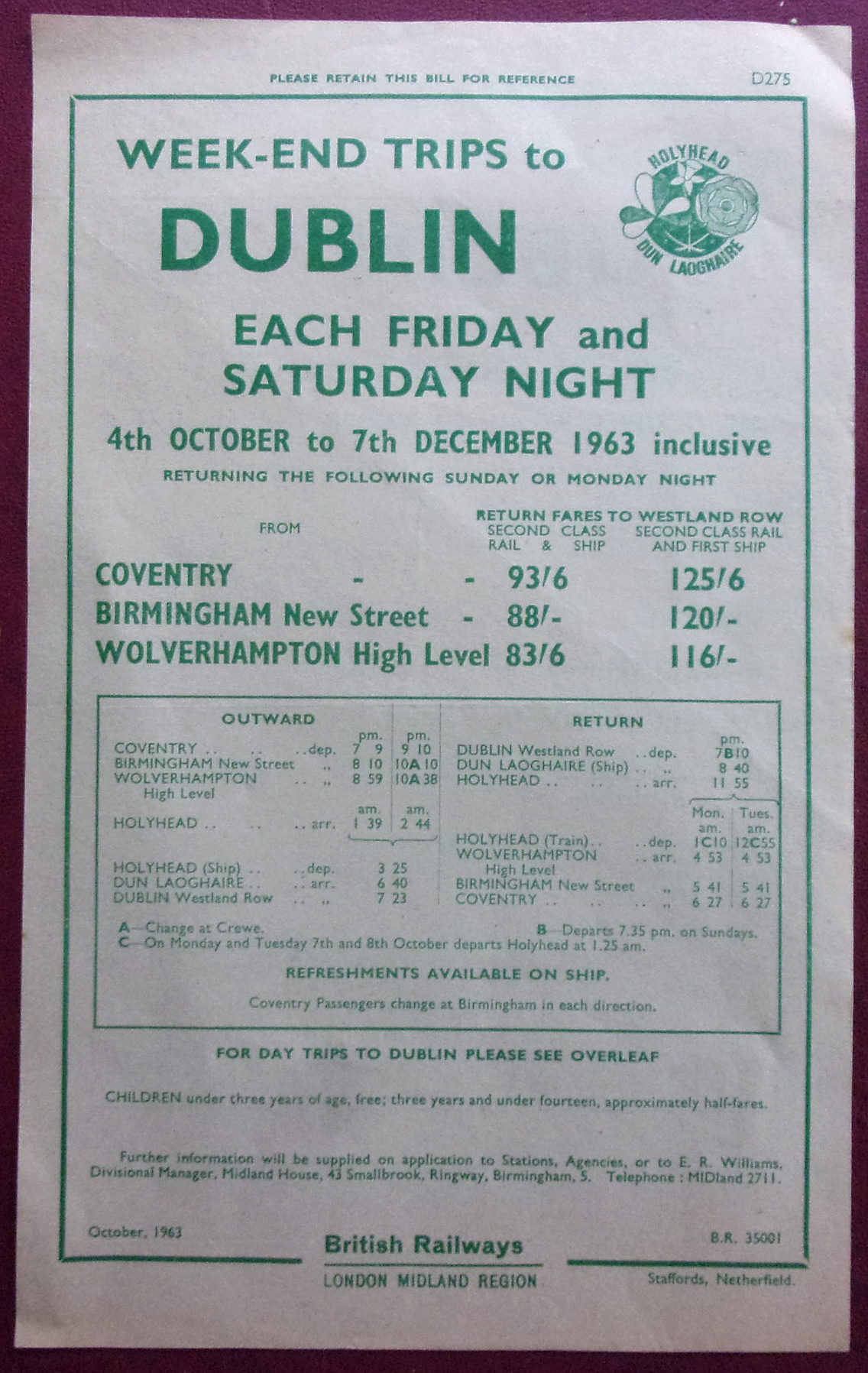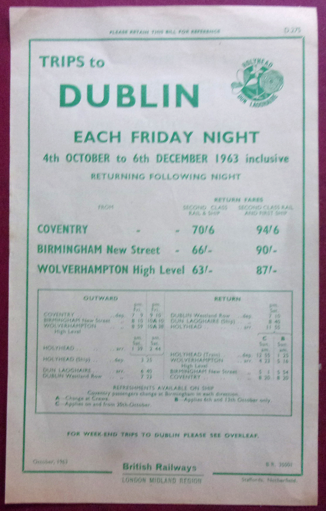 2 x Leaflets 1 x L&YR “Southport” dated 1891, framed & glazed, other is a double sided “Dublin” dated 1963.. v.g.c. (3 x images to view)
