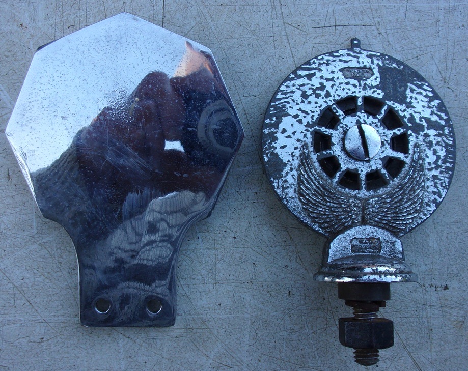 2 x MOTOR CAR BADGES, 1 x “THE AUTOMOBILE CLUB ASSOCIATE” Is a bonnet mascot in need of tlc. “M.A.Y.C, Chrome badge, bar badge. In good condition.