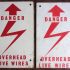 | 2 x overhead danger overhead live wires, as fitted to locos. 5″ x 8″. Ex service. |