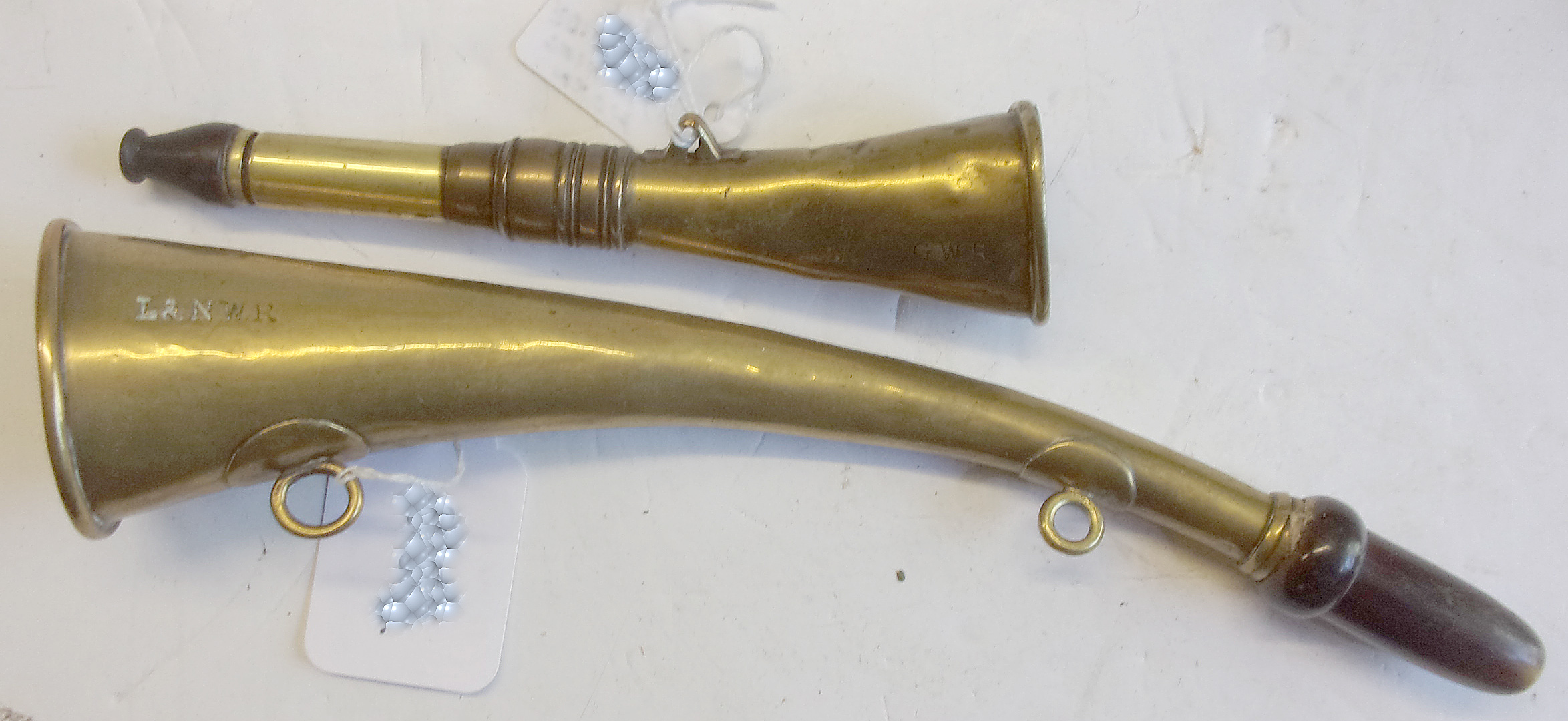 2 x PW Warning Horns, 1 x LNWR, 1 x GWR. Both with horn mouth pieces.