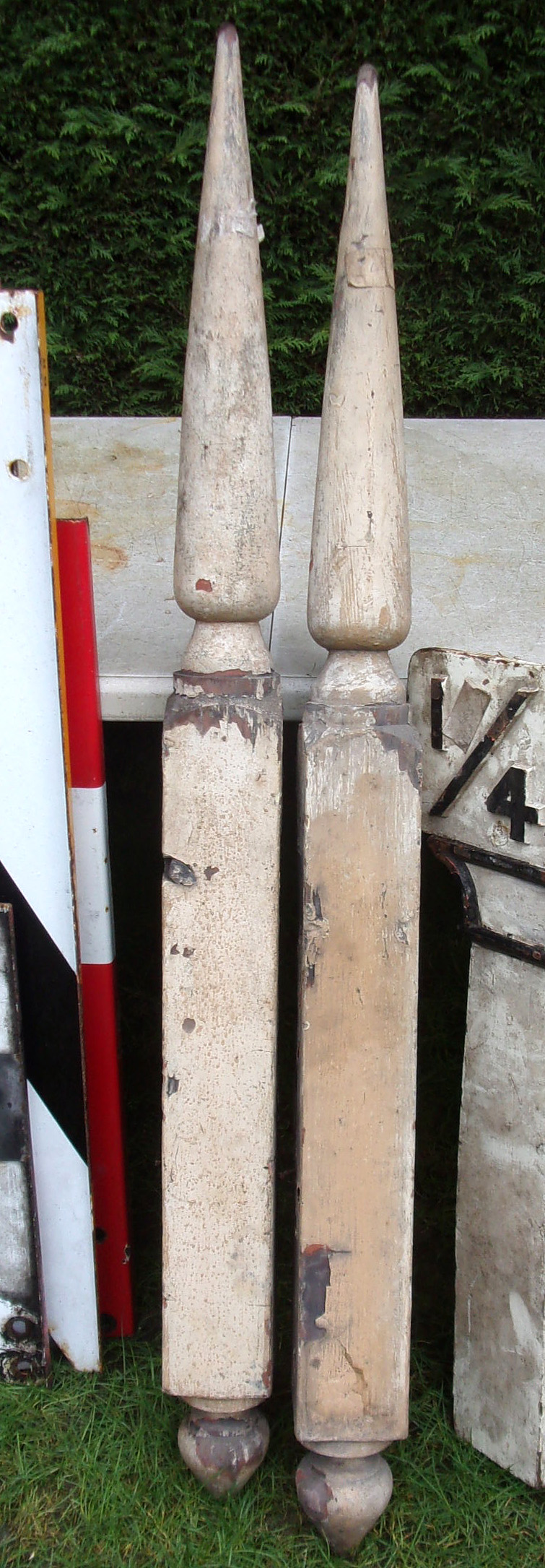 2 x Signal Box Roof Finials, made of pitch pine, some damage from removal.