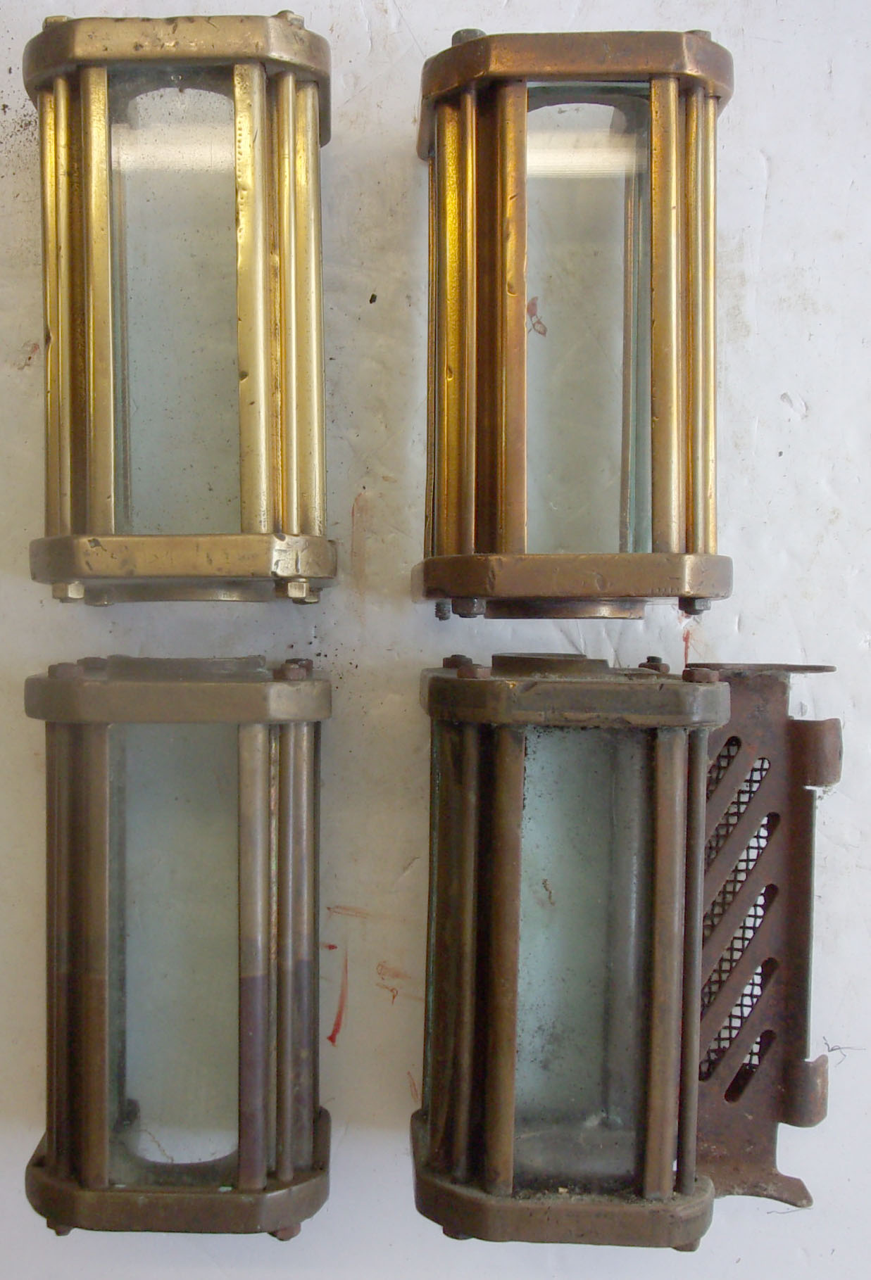 4 x locomotive water gauge protectors, 1 x complete with back door, other 3 are without back door. No cracks in glasses. Sound.