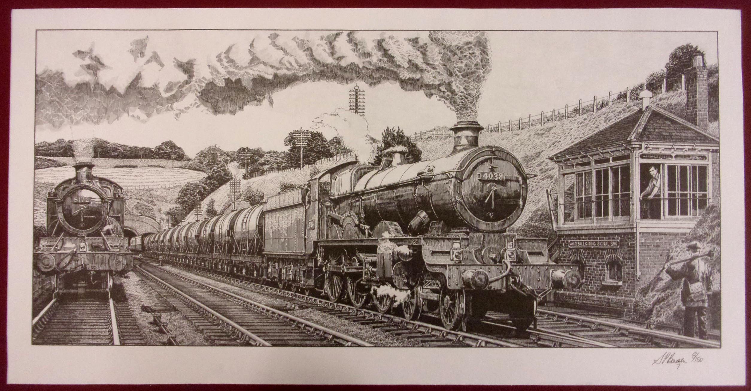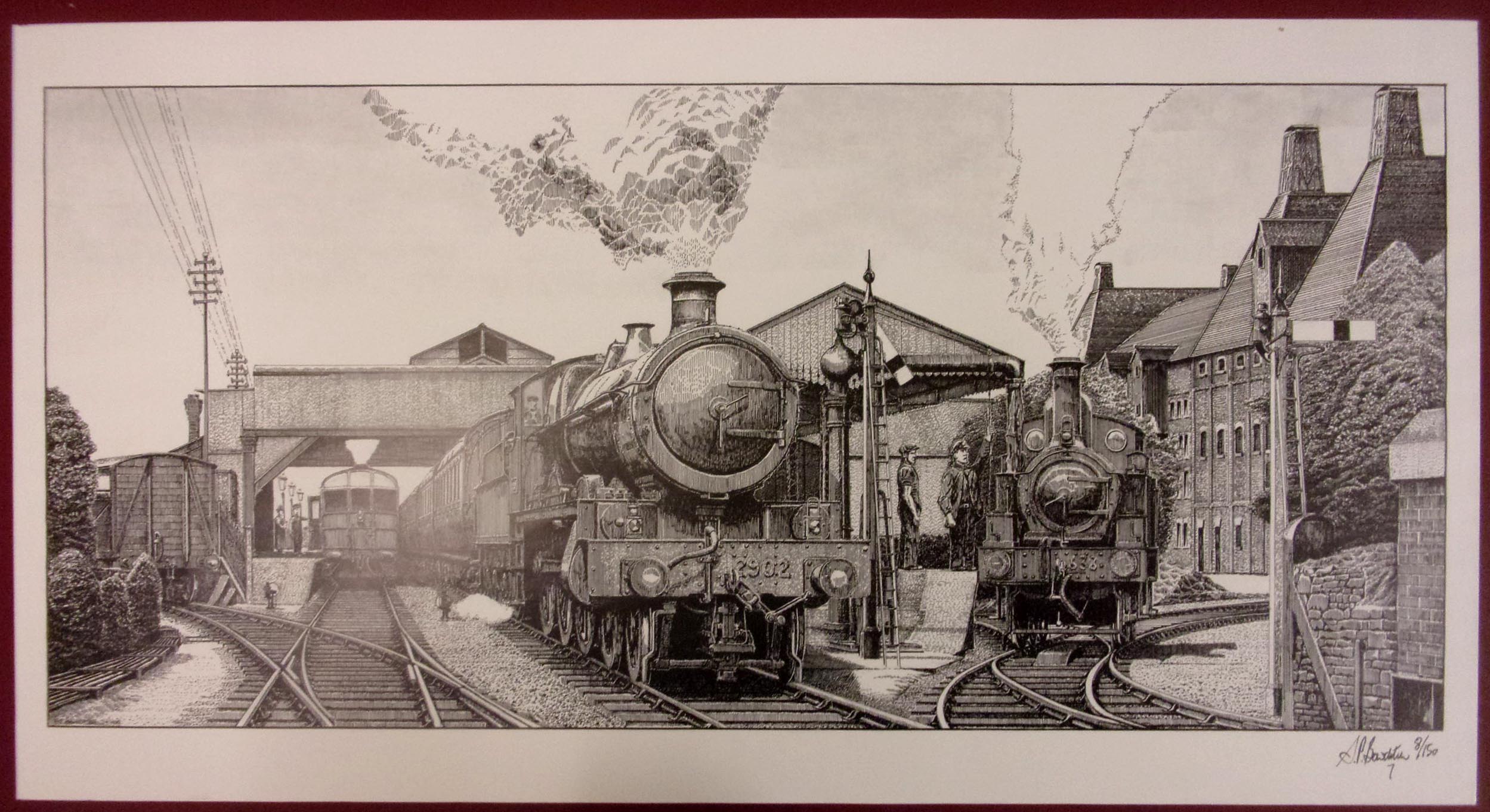 4 x Pen & Ink Signed Ltd Ed. Drawings 24″ x 11″, “Southern Railway” Signed Ltd Ed. 21″ x 12″. “Stafford Rd” Signed Ltd Ed. 18″ x 12″. ( 6 x images to view)