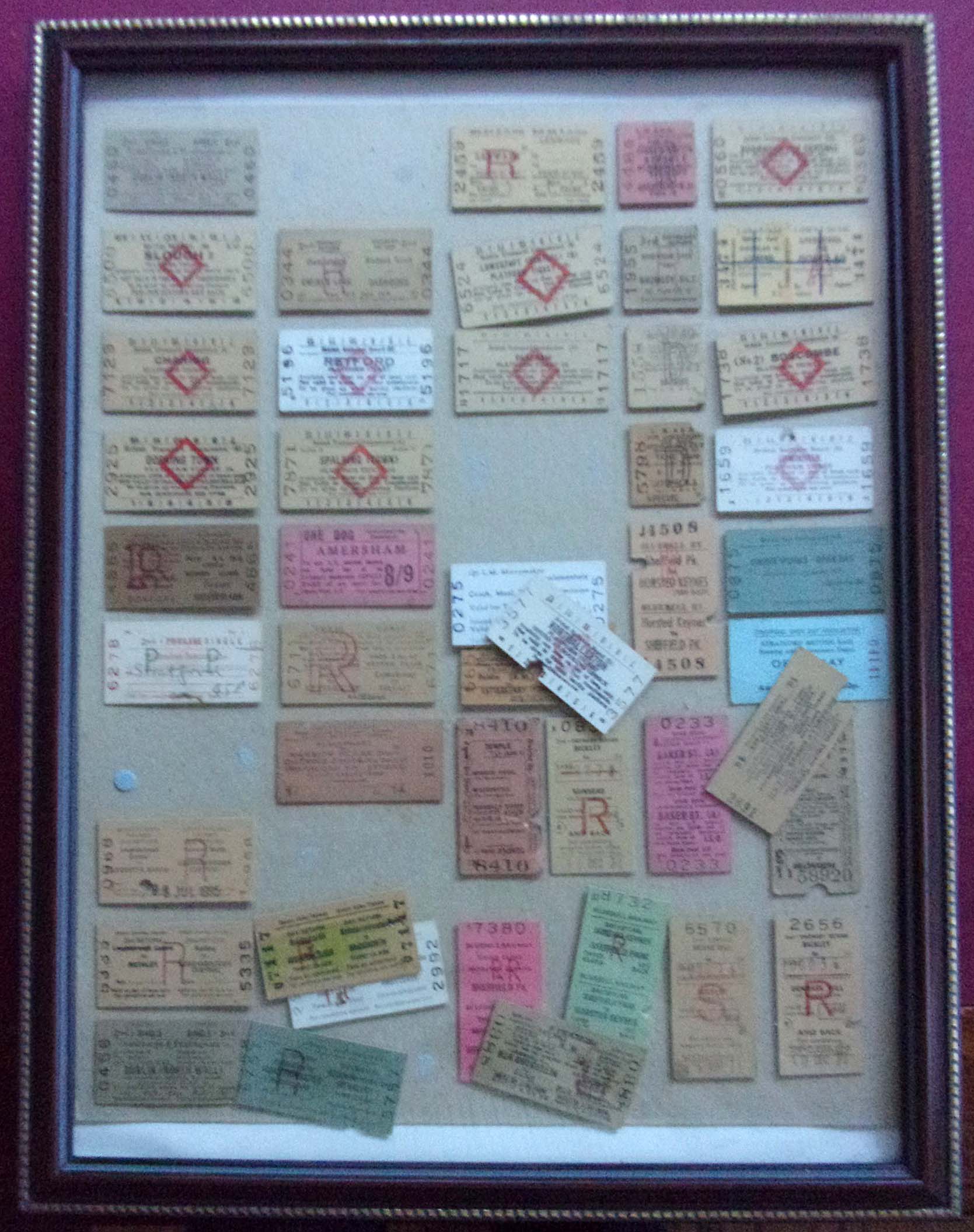 4 x small framed displays of Tickets, as pictured, also large panel containing tickets ( 2 x images to view)