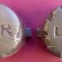 A pair of cast brass Lancashire & Yorkshire Rly cast brass cart hub caps, showing signs of a long hard life. Engraved “LYR”.