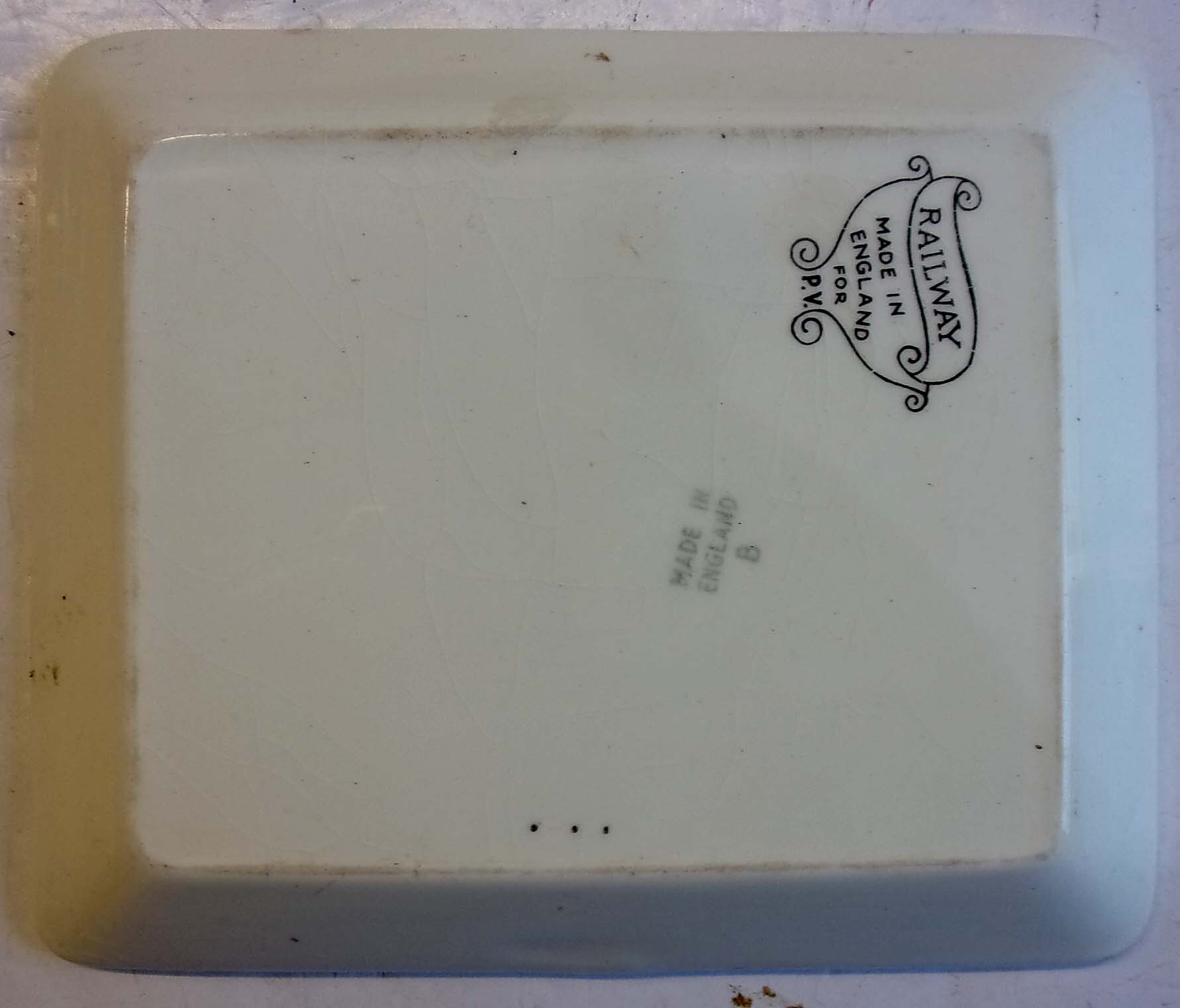 Antique Ceramic Link & Stud Tray by Railway, made in England for P.V. 6″ x 5″. No chips or cracks. (2 x images to view)