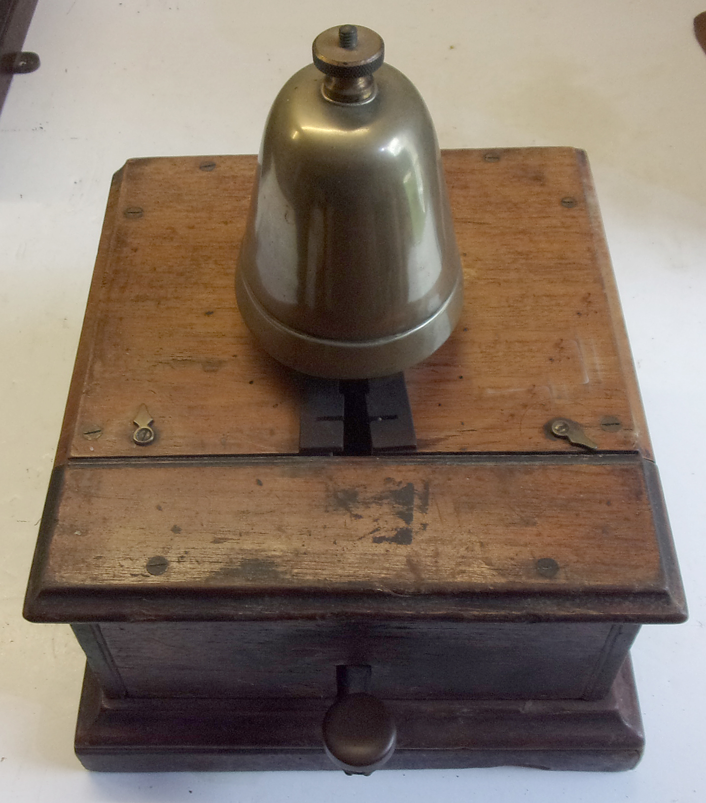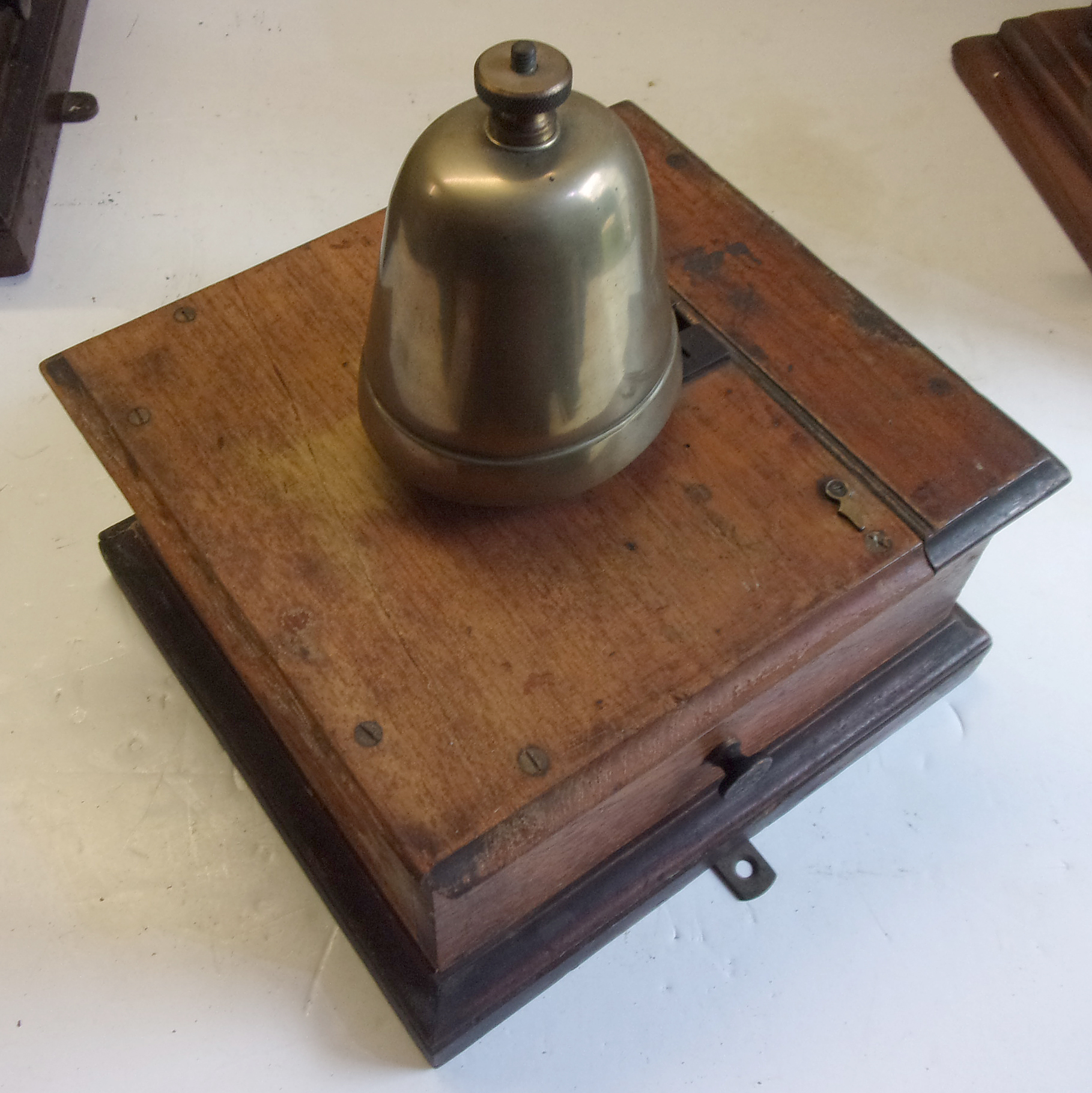 Blockbell with brass cow bell. Little loss to rear top moulding.