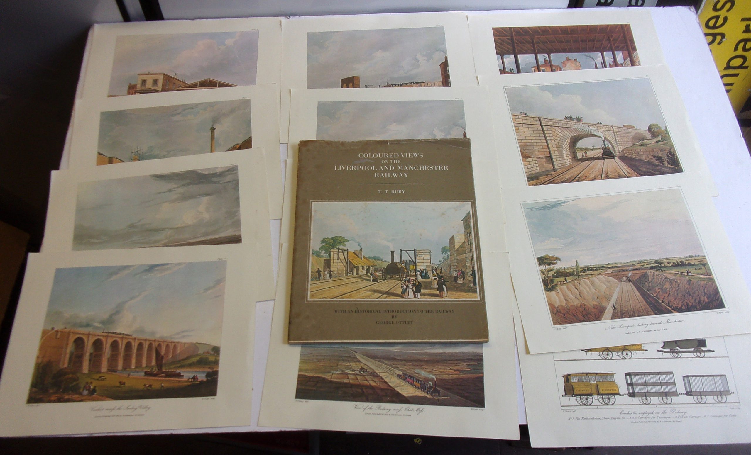 BOOK OF COLOURED PRINTS OF LIVERPOOL & MANCHESTER RLY, COMPLETE, COMES WITH LOOSE PRINTS OF SAME IN BOOK. V.G.C.