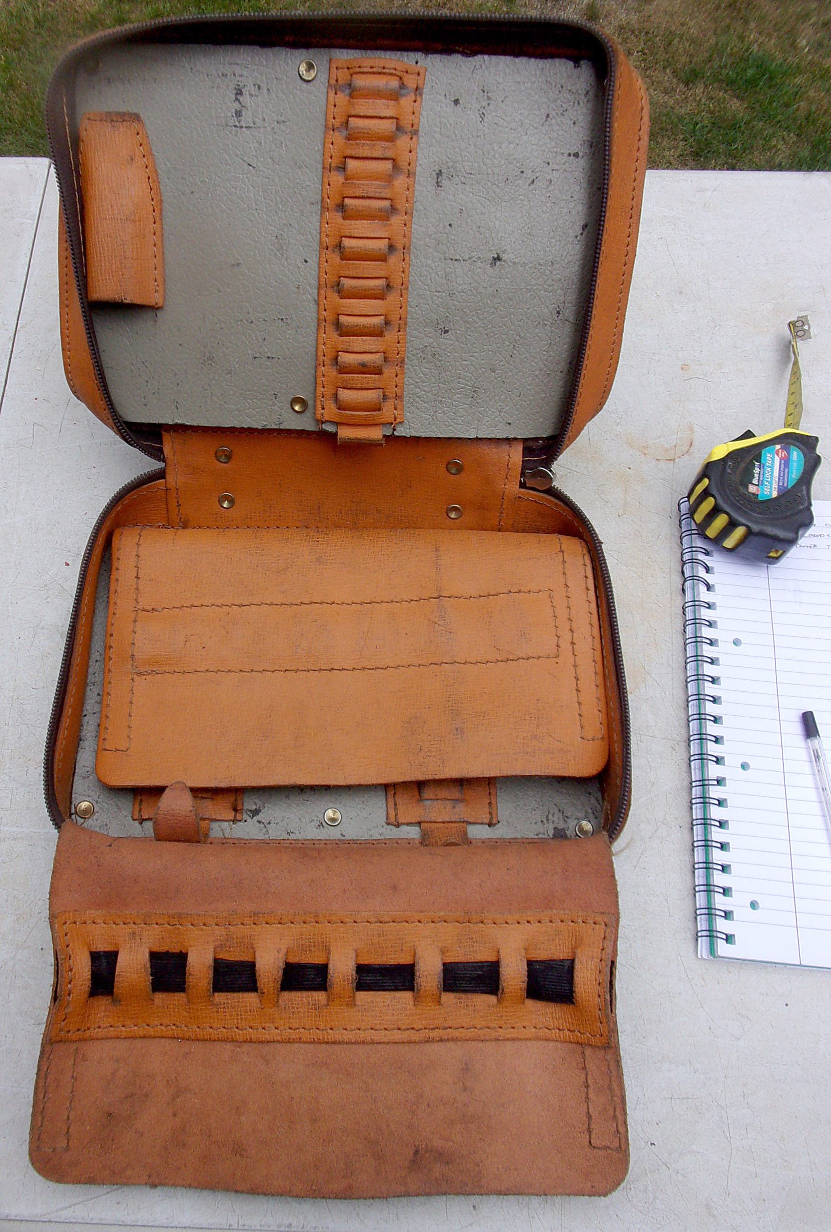 BR Leather tool satchel, zip works fine, put it back to work. 13″ x 9″.