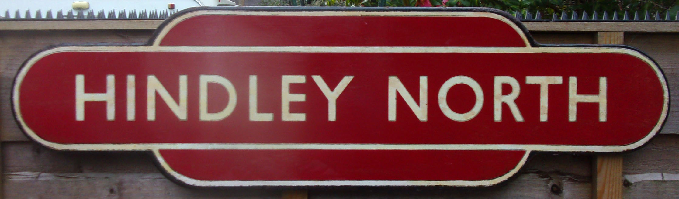 BR Station Totem enamel sign “HINDLEY NORTH” (M) FF. Good colour, medium shine. Free from enamel damage. Located on the Manchester Southport Line.