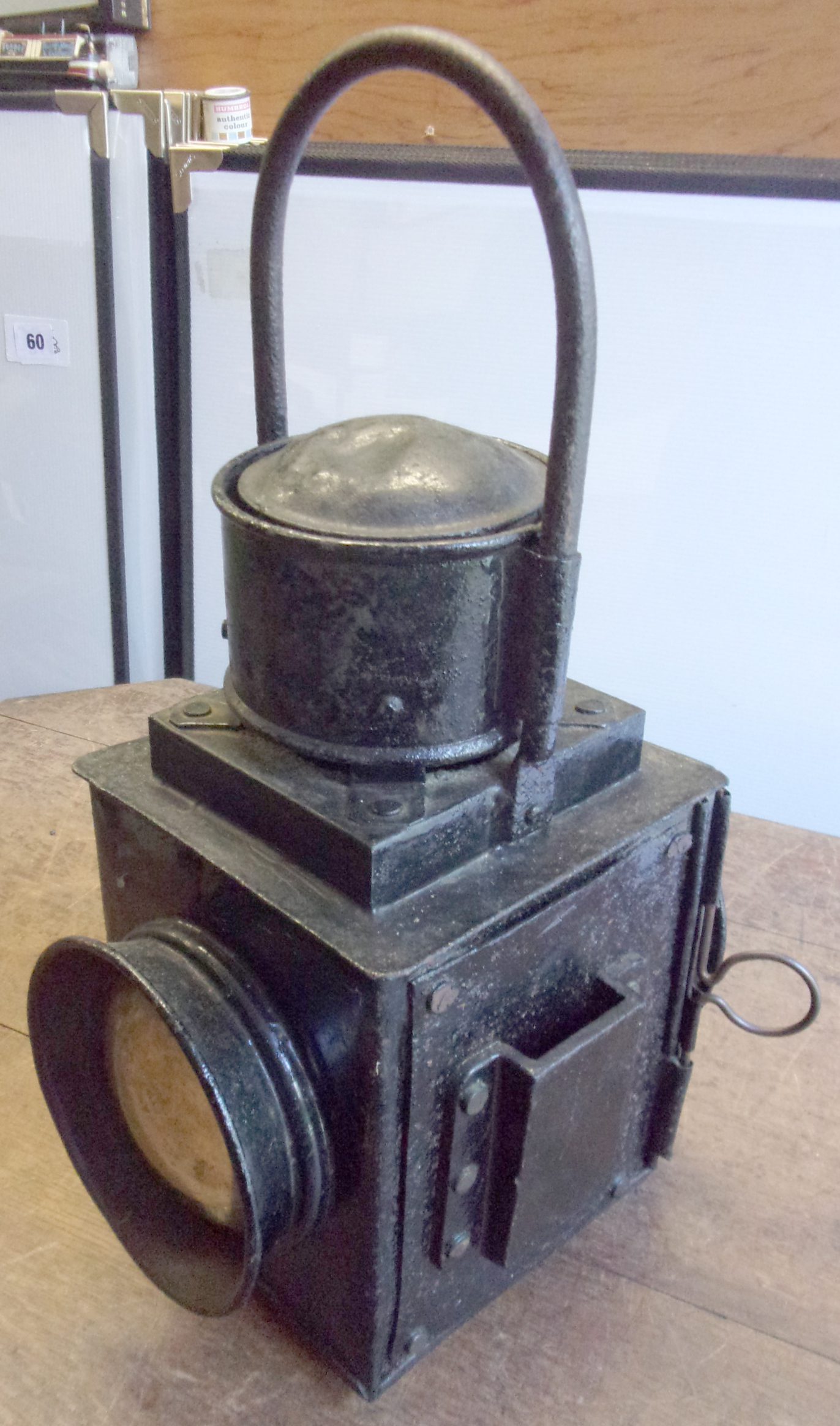 Brake Van Lamp, red & clear bullseye lens, both clean. Complete with vessel & burner. V.g.c. for age.