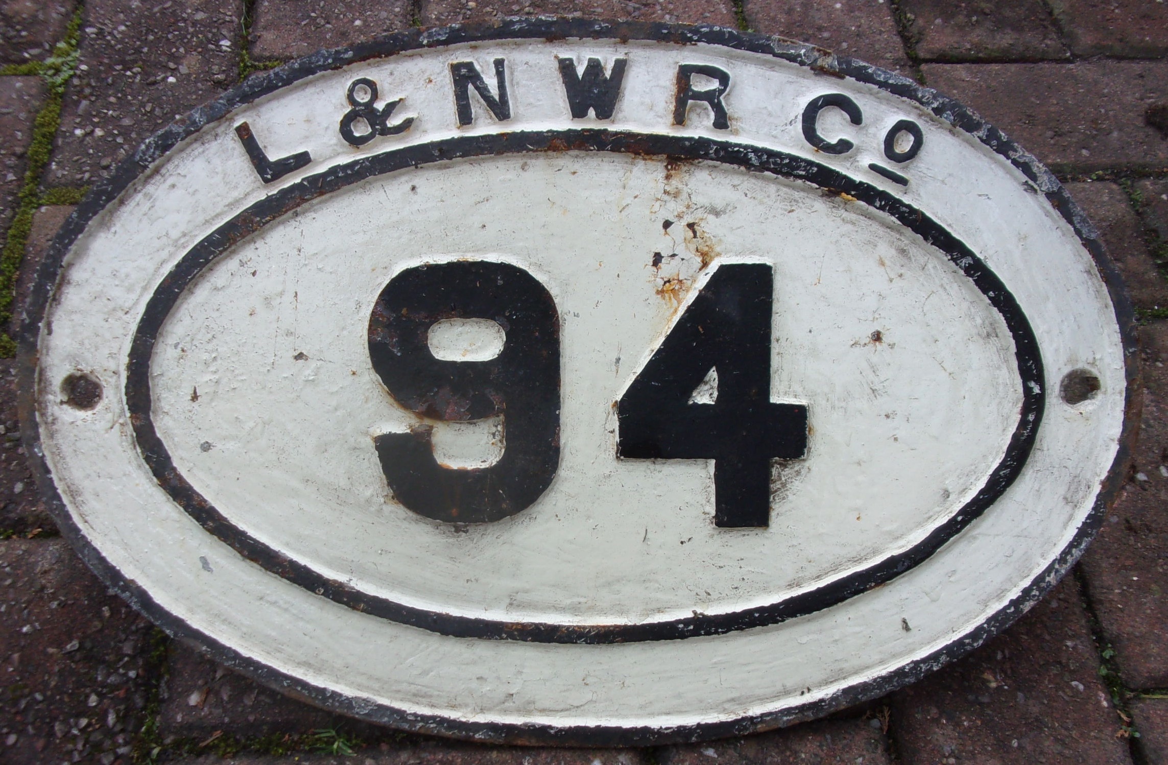Bridge Plate “L&NWR Co. 94” London & North Western Railway , ex bridge back. Repainted face. Sound condition.