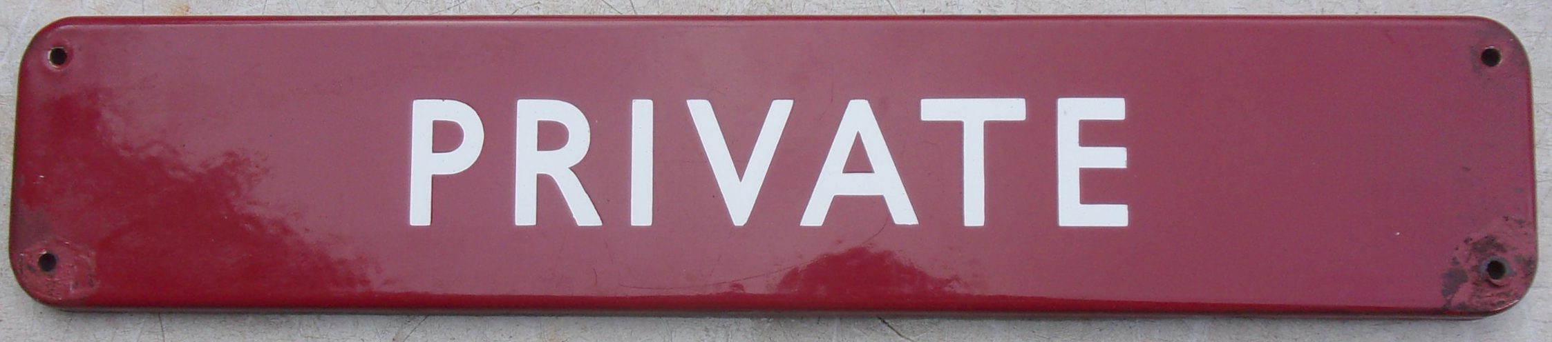 BR(M) FF enamel Doorplate “PRIVATE”. Good colour & shine, left hand marks are shadows, only damage is around the fixing holes.
