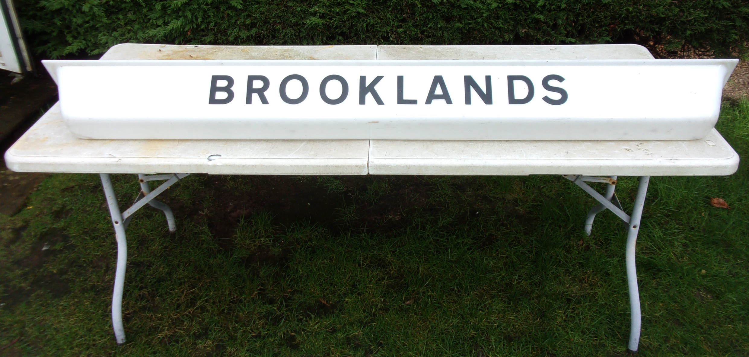 “Brooklands” station light defuser. 67″ long, 5 1/2″ wide. V.g.c. No cracks or damage.