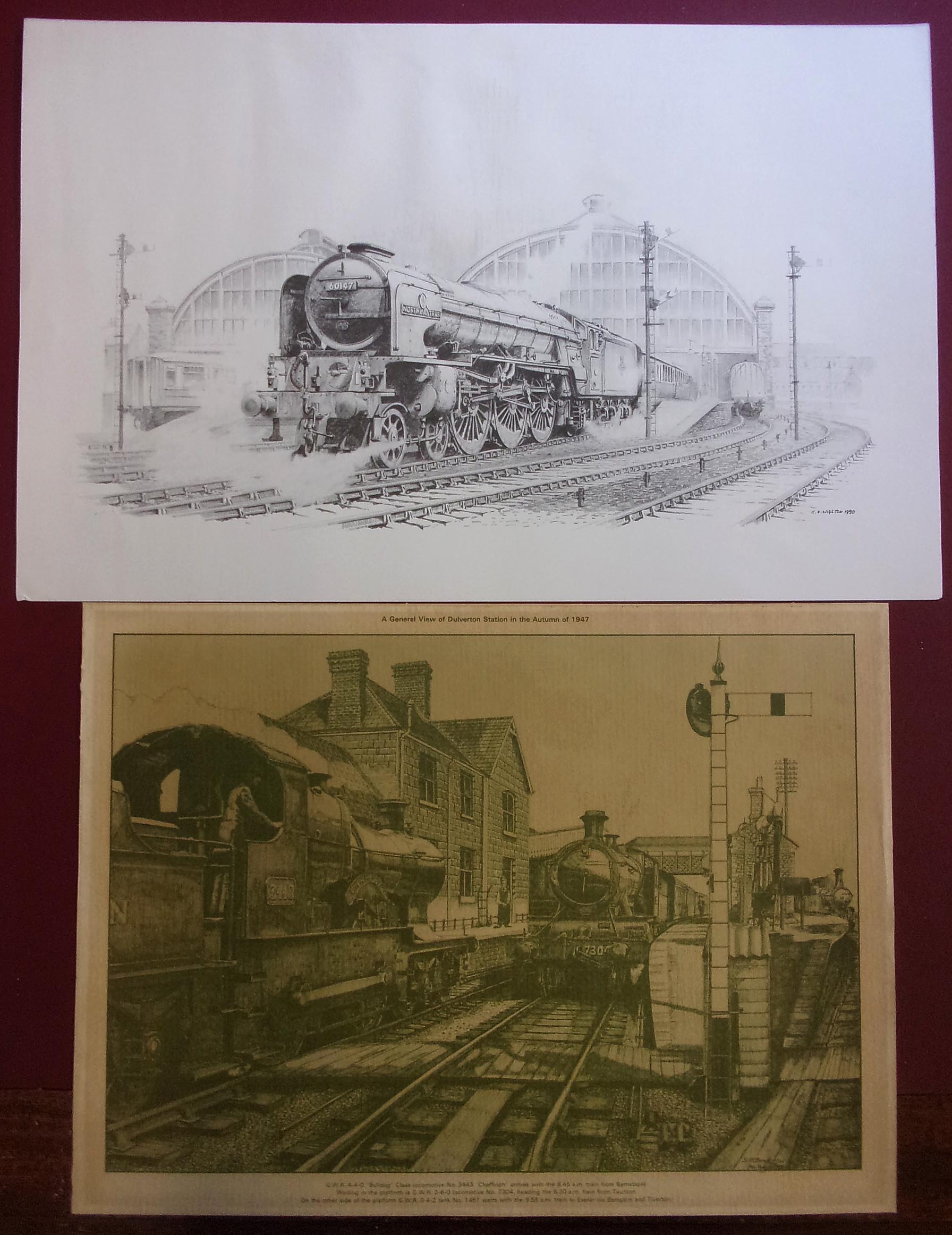“Cart Lane Crossing” – signed. 10″ x 8″, “North Eastern ” “Dulverton” 20″ x 12″, “Power & Glory” 15″ x 12″, “Lorna Doone” 16″ x 12″, “Trolley Buses” 15″ x 10″, “Quanton Belle” 15″ x 10″. (6 x image to view)