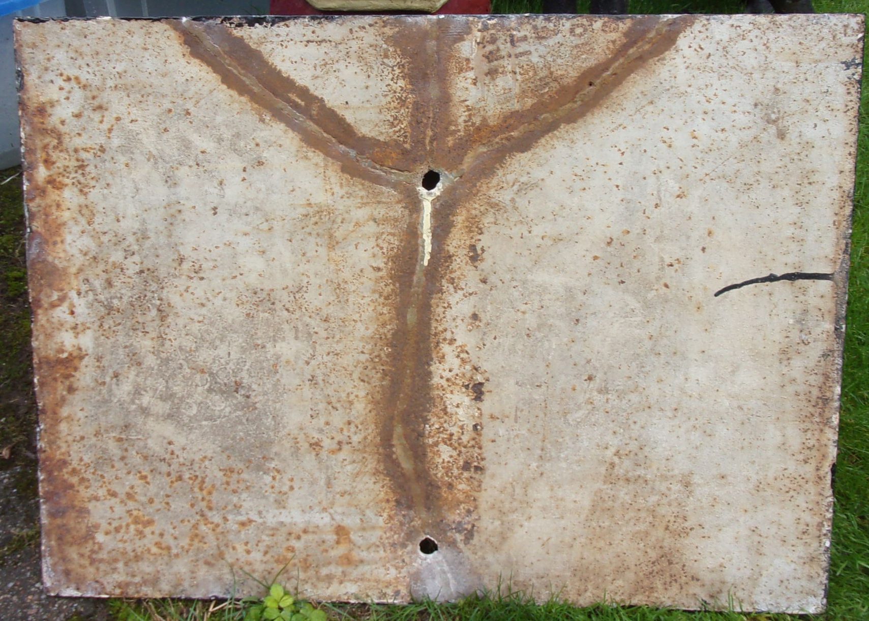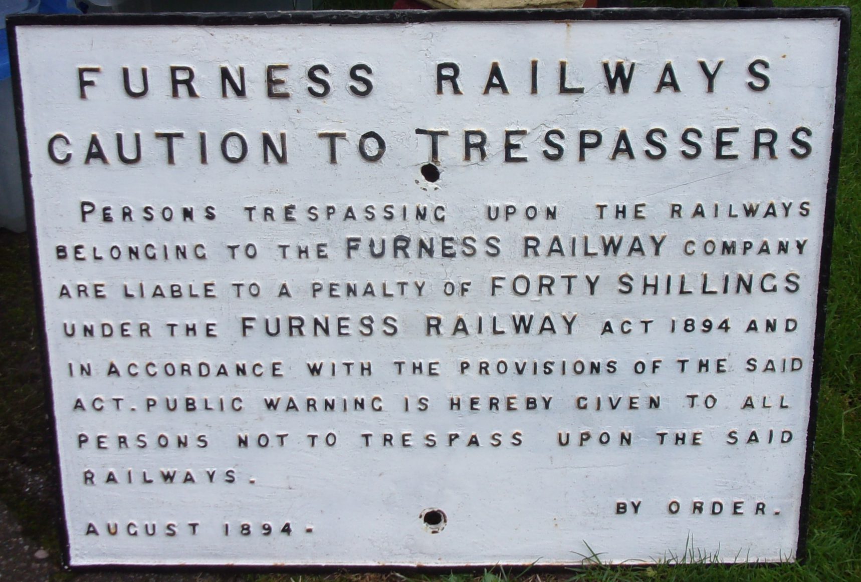 Cast iron sign “Furness Railways, Caution To Trespassers”. Repaired very neatly, virtually unnoticeable from face. 27″ x 17″.