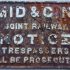 Cast iron sign “Midland & Great Northern Rly “MID-GN JOINT RAILWAY NOTICE TRESPASSERS WILL BE PROSECTED”. Ex lineside condition. Broken in two halves, will repair. Rare sign. 18 5/8″ x 12 1/4″.