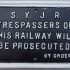 Cast iron sign “S.Y.J.R. TRESPASSERS ON THIS RAILWAY WILL BE PROSECUTED BY ORDER”. A rare sign from the South Yorkshire Junction Railway, repainted face, ex lineside back with post mark. 15″ x 10″. V.g.c.