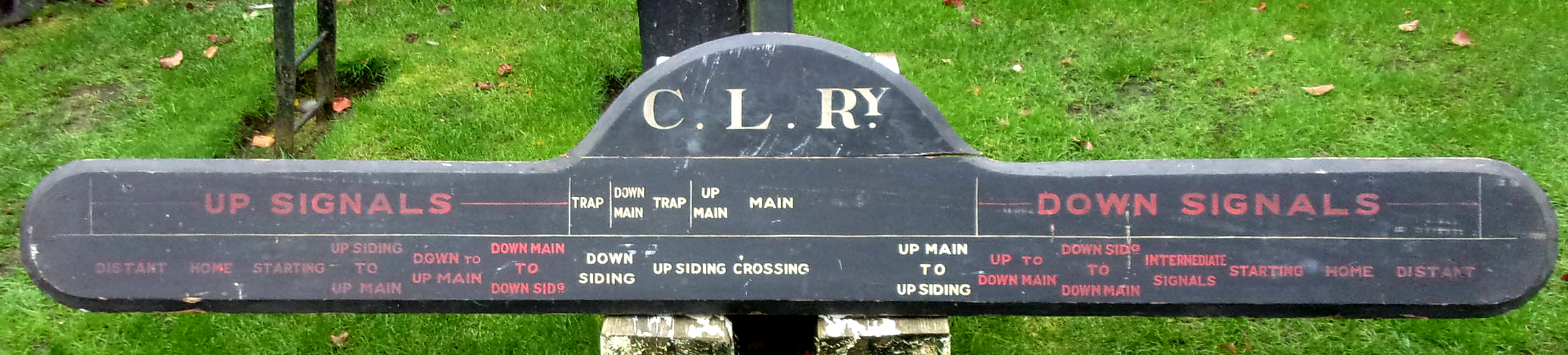 Cheshire Lines Committee Signal Box Board, pitched pine painted, demilune top is separate, fits with tongue & groove. Ex box condition. No damage.