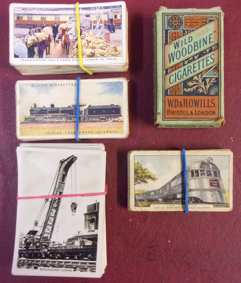 Cigarette Cards WD&HO Wills, Senior Service & Gallaghes, accompanied by an empty Woodbine Pack. 10 cigies.