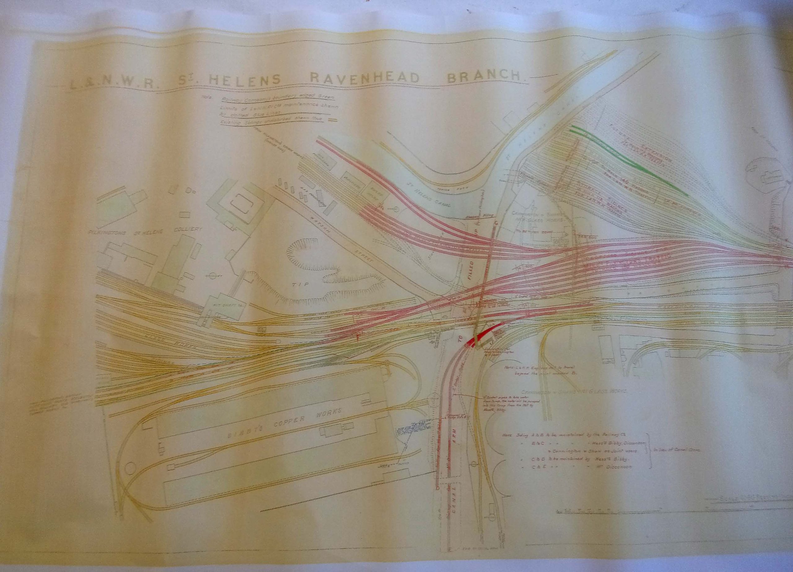 Copy of L&NWR ST Helens Ravenhead Branch Dated 1911. v.g.c. on paper. Approx. 9ft in length. ( 2 x images to view)