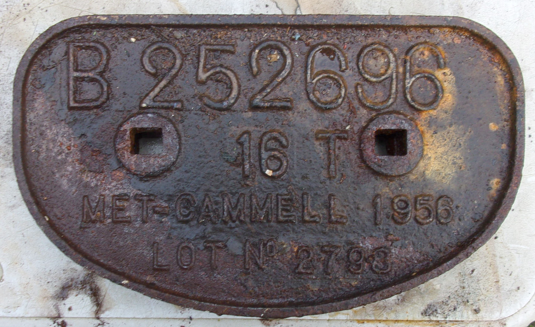 D Wagon plate “Met-Cammell 1956 Lot No. 2730 B 252696 16T”, ex wagon.