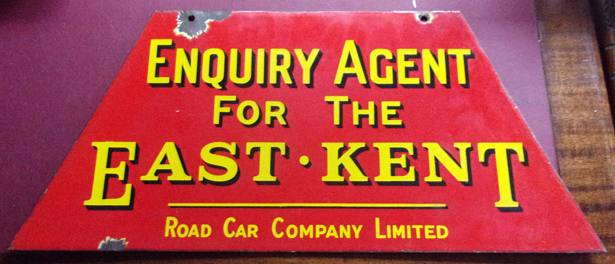 Enamel double sided Hanging Sign “Enquiry Agent For The East Kent Road Car Company Limited”. Super colour & shine. 28″ x 13″.