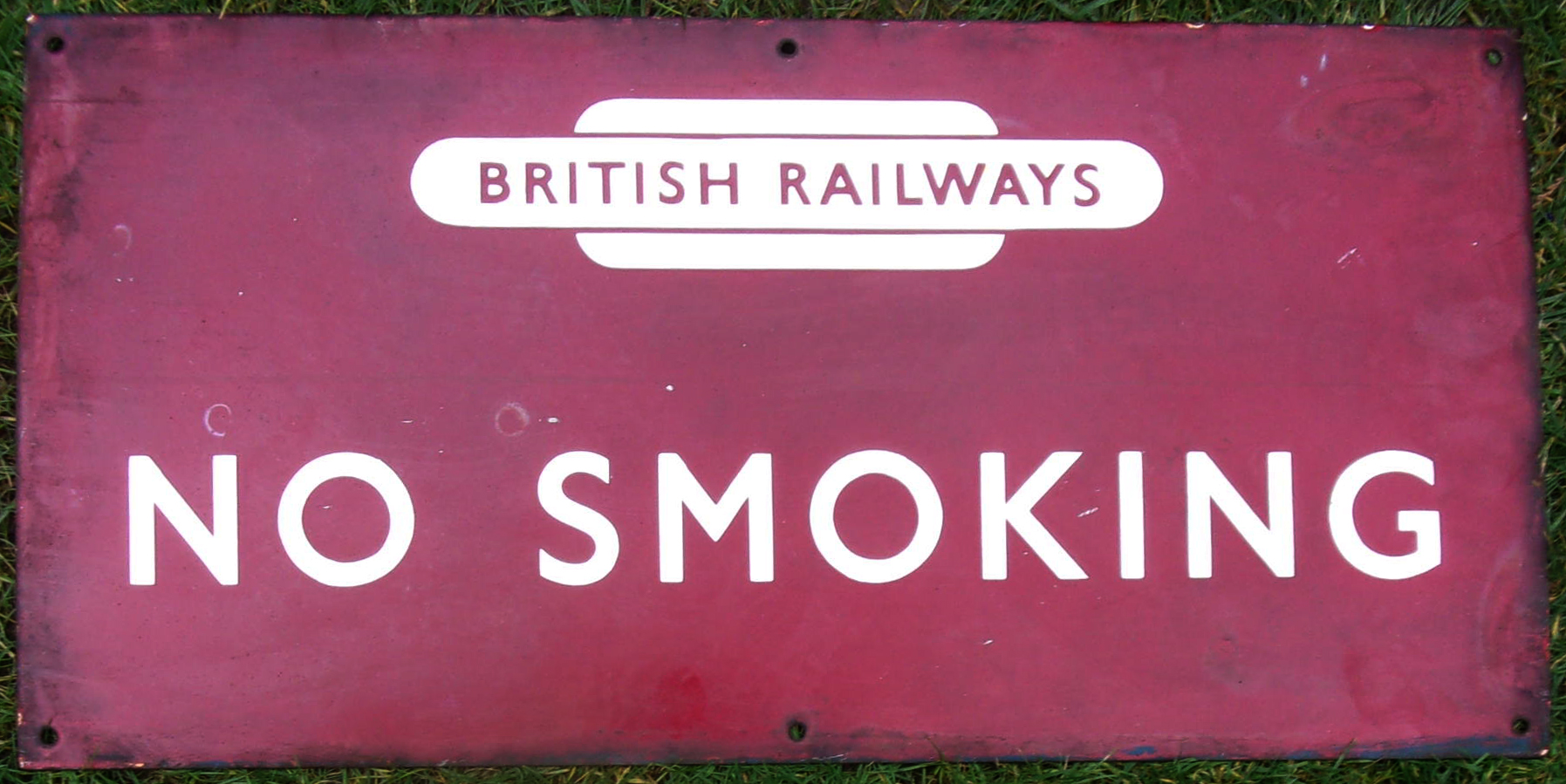 Enamel Sign “No Smoking” BR(M) Flangeless. With British Railway totem emblem. Good colour, needs a clean & polish, will come up nicely. No chipping or loss of enamel.