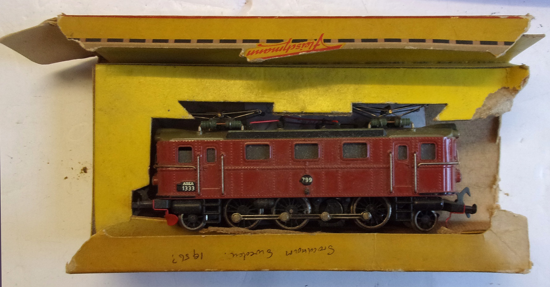 FLEICHMANN OVERHEAD ELECTRIC LOCO with some catenary by Triang. Loco in v.g.c., box tatty. Catenary not so good. ( 2 x images to view)