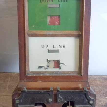 GWR mahogany cased Double Line Spagnoletti Block Instrument, complete with both keys, flaps & slides & rear relay box. V.g.c.
