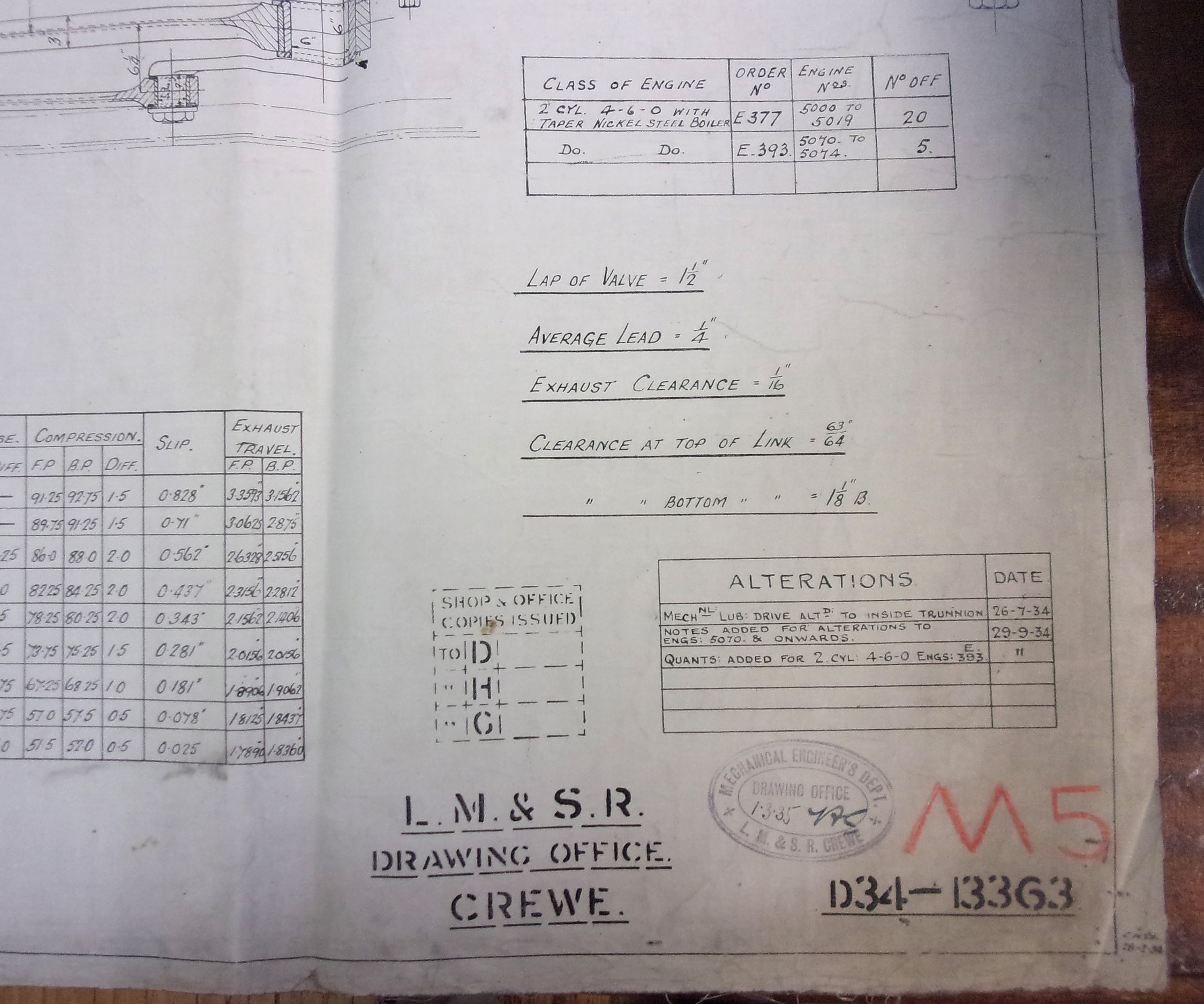 LM & SR Drawing Office Crewe “Motion Arrangements” 1934, on linen. Little grubby but no damage. 41″ x 28″. ( 2 x images to view)