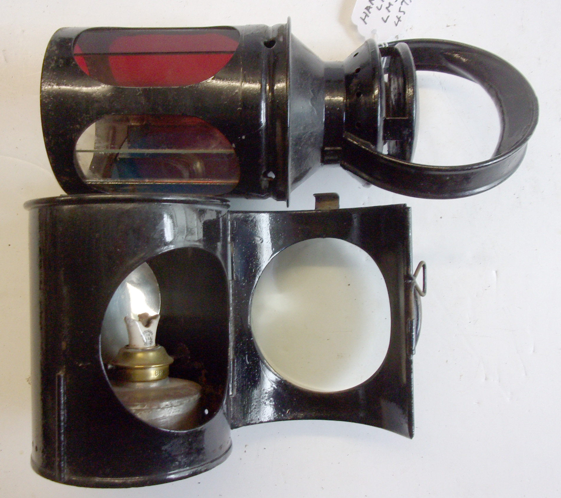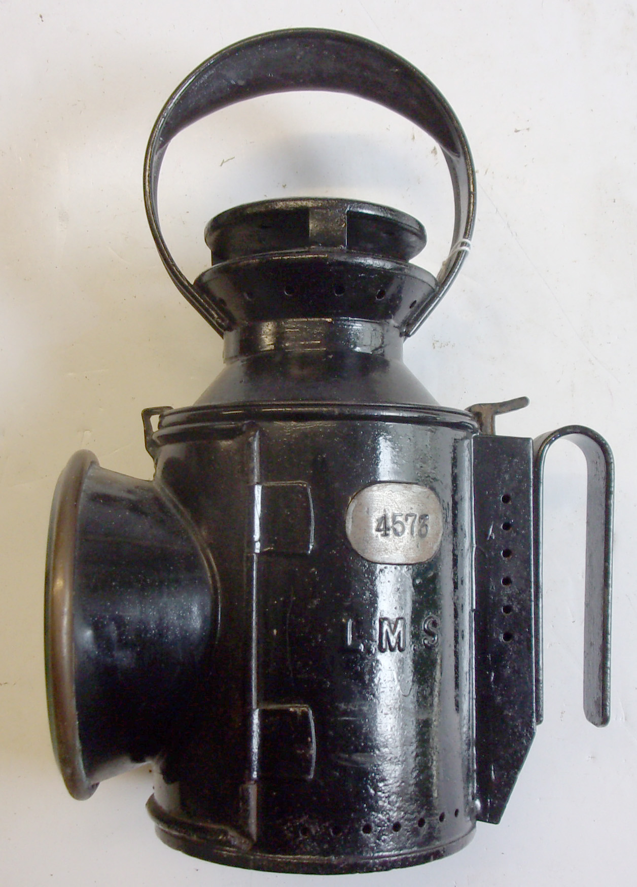LMS 4 x aspect handlamp with fogging lens, all aspects slatted glasses. Complete with vessel, burner & reflector, plated to body “4573”. Embossed “LMS” also to the body. 2 x images to view.