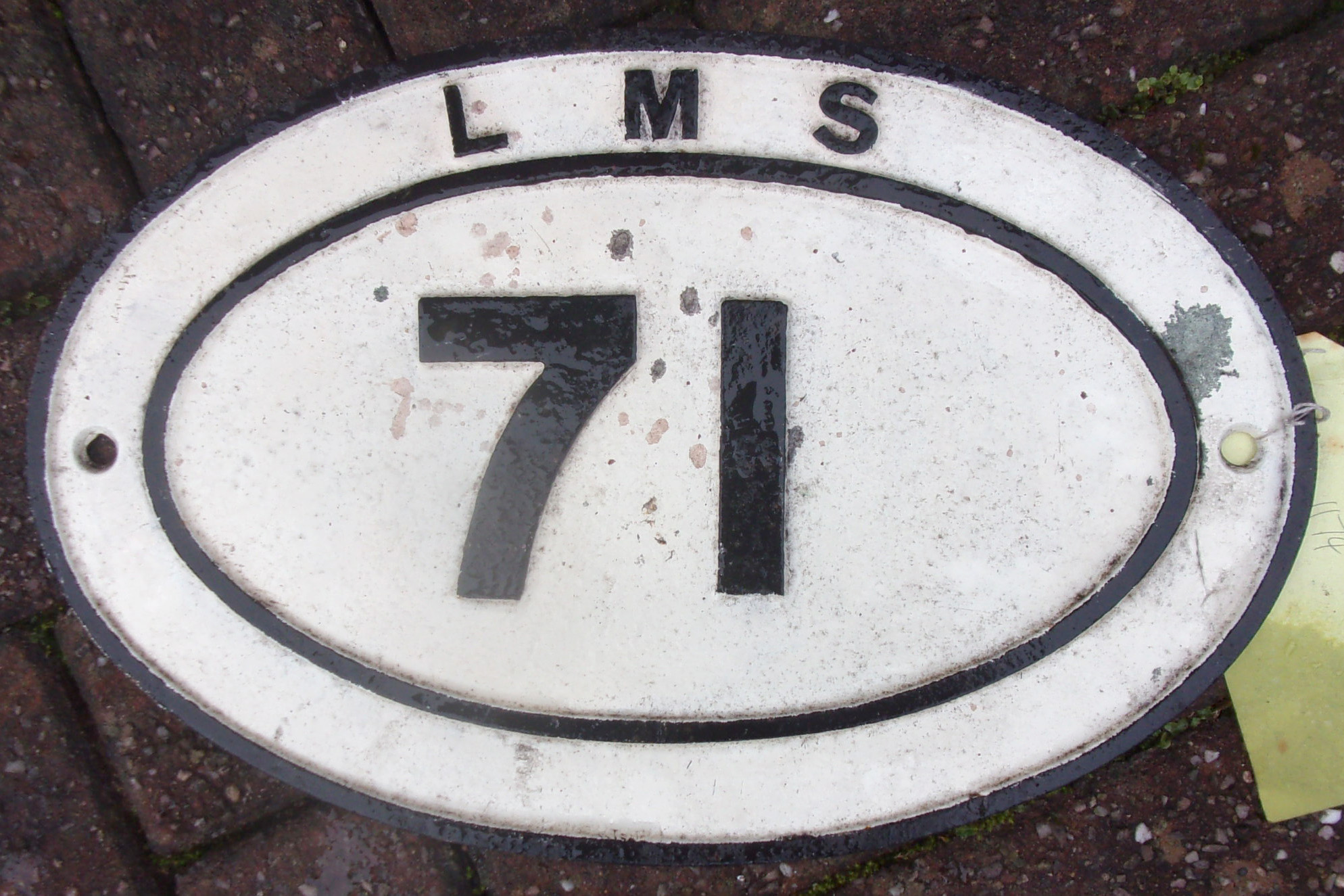LNS Bridge Numberplate cast iron “LMS 71”. Repainted face.