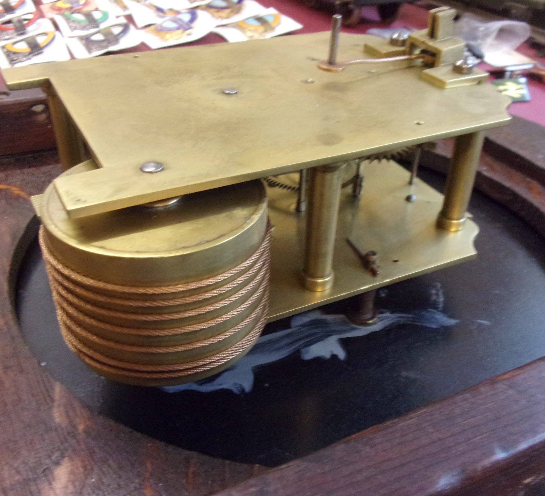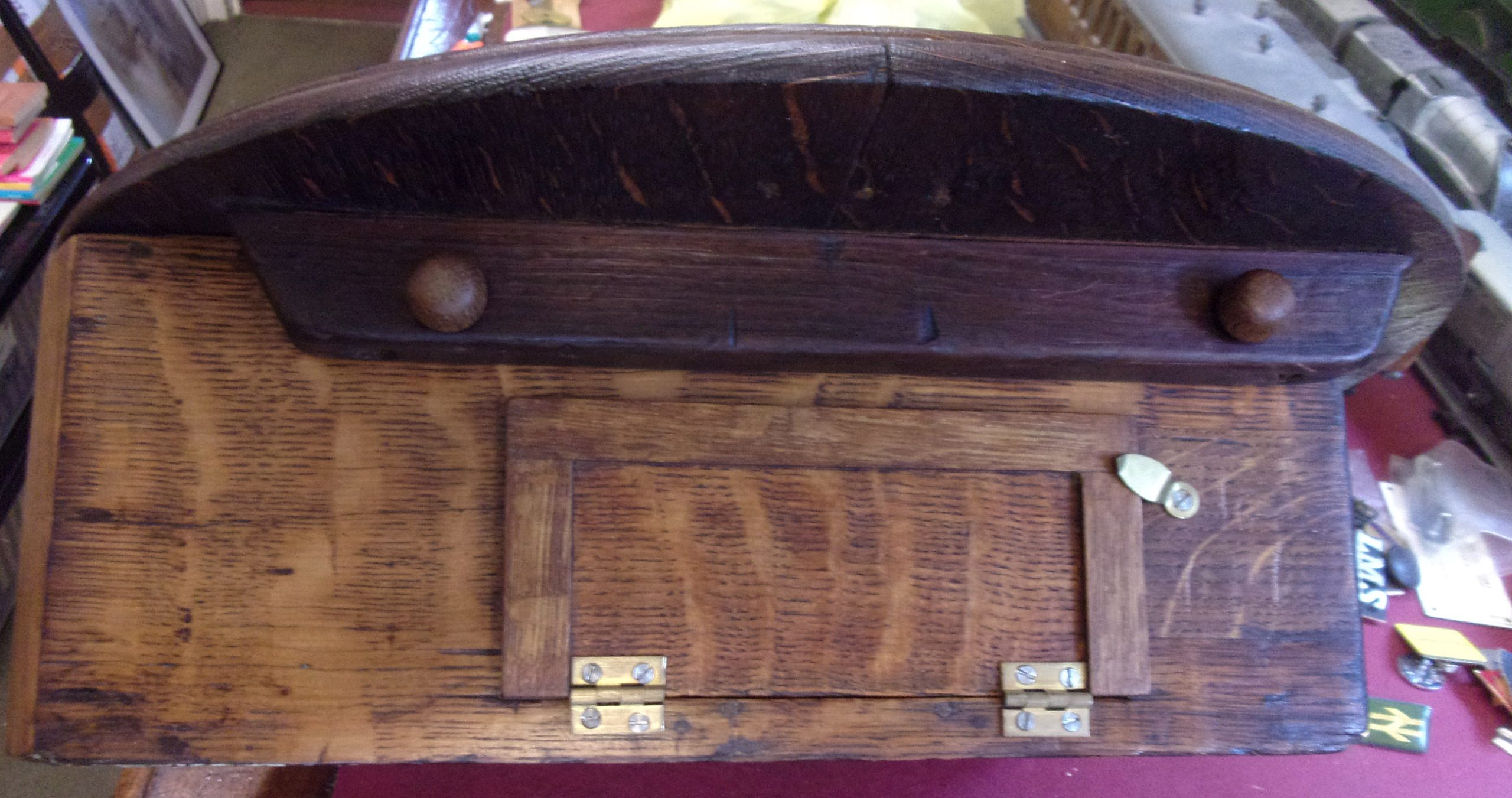 L&NWR Oak 12″ English Face Fusee Timepiece No. 1419 late 19th Century Timepiece. Records show that it was in use in the shunters room, Birmingham New Street. In lovely condition. Restored by Mr David Parr. Front glass needs securing with putty as original has fallen out, otherwise perfect working order, complete with pendulum and key.