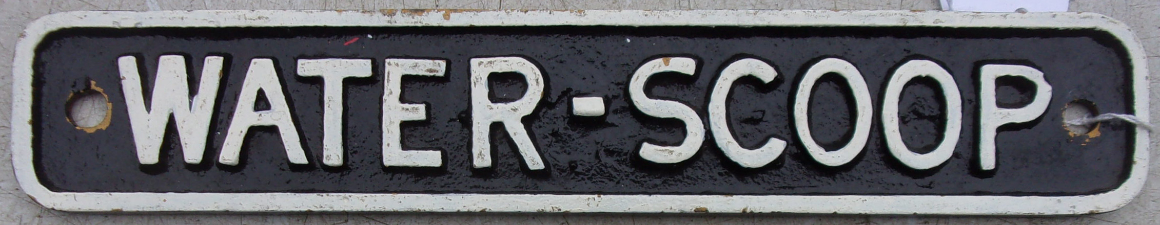 Locomotive Cab Notice “Water Scoop” ex B1 Loco 61350, see above lot for loco details. Cast iron. 10 3/4″ x 2″. 2 x pictures to view.