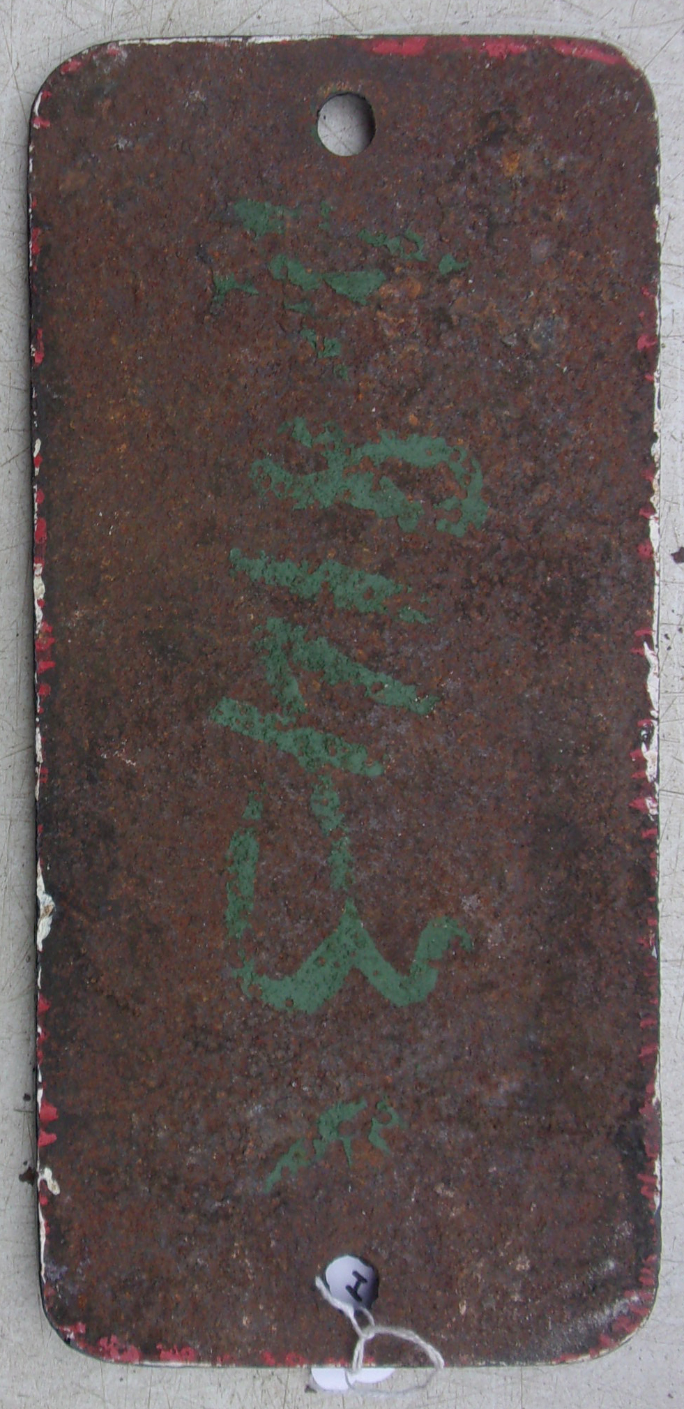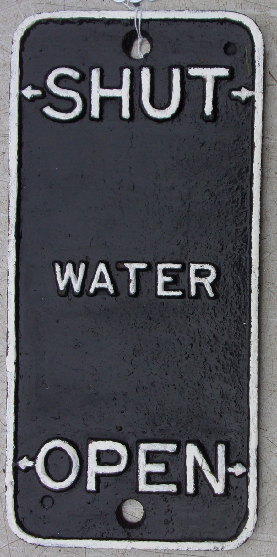 Locomotive Cab Notice “Water Shut-Open”, cast iron as retrieved from Stanier Class 8F “48143”. Repainted face, ex loco back. Built Crewe in 1942, allocations included Holbeck, Kettering, Wellingborough, Toton, Colwick. 2 x pictures to view.