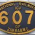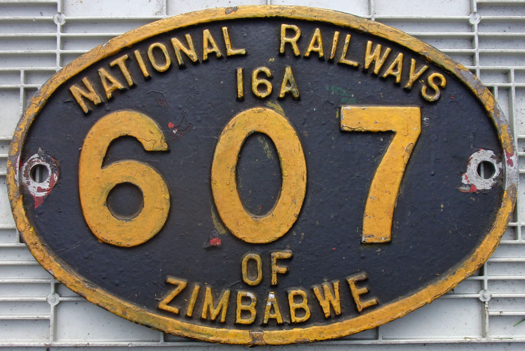 Locomotive Cabside Numberplate “National Railways of Zimbabwe 16A” “607”, as carried by Garratt Loco, built Beyer Peacock, Manchester 1953. Embossed cast aluminium, ex loco condition. 18 3/4″ x 11 3/4″.