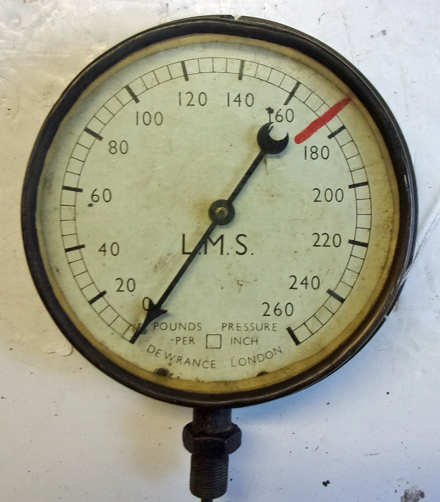 Locomotive Steam Pressure Gauge , face written “LMS by Dewrance London” 0-260, brass case. 6″ diameter. 2 x pictures to view.