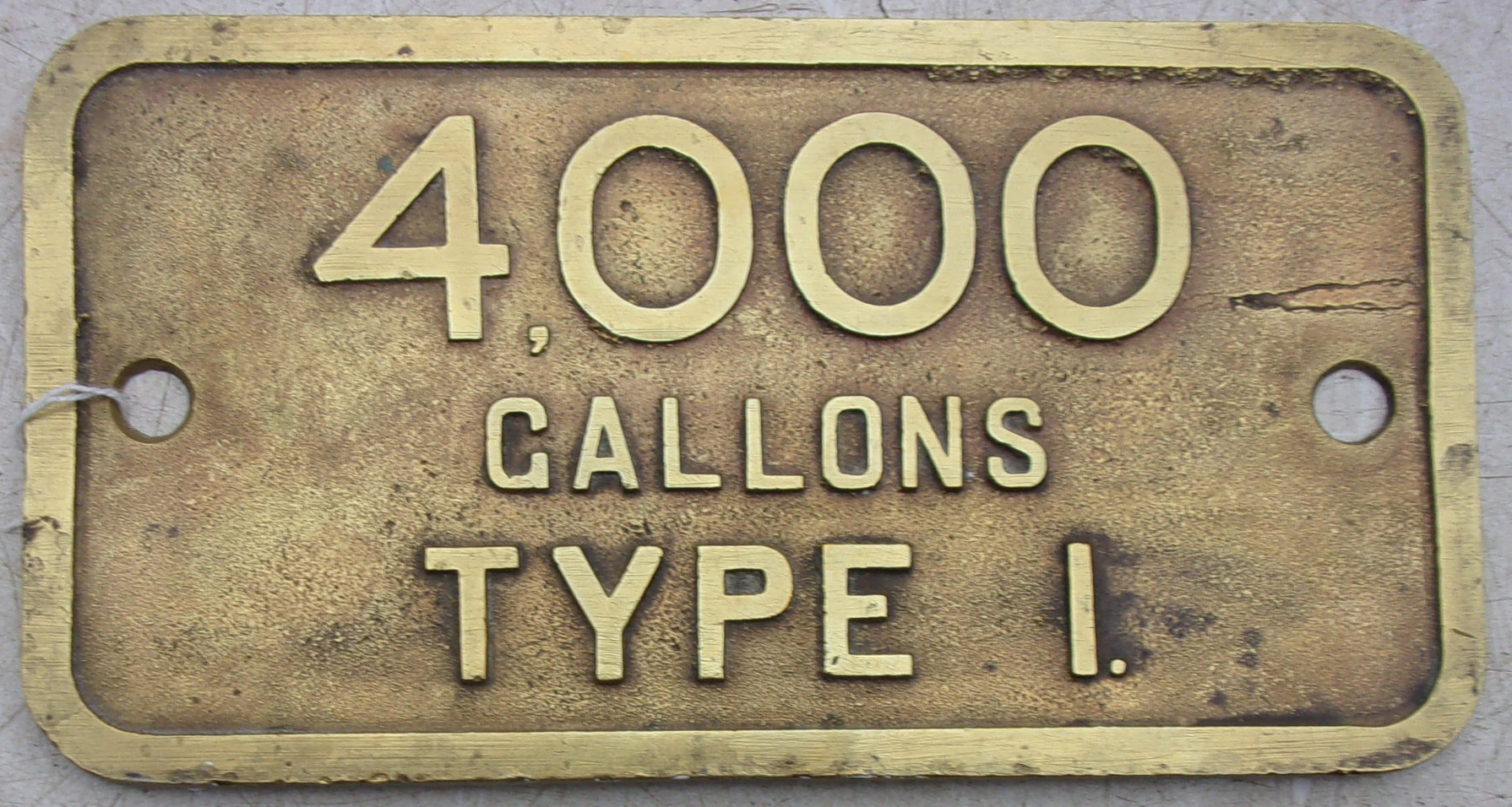 Locomotive Tender Water Capacity Plate 4000 Gallons, as removed from tender, attached to Stanier Class 5mt numbered 45019, built Crewe 1935. Allocations include Edge Hill, Patricroft, Springs Branch, Carnforth. Withdrawn in 1967 from Springs Branch, cast brass, type 1. 10 1/2″ x 5 1/2″. Cleaned face, ex loco back. 2 x pictures to view.