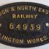 Locomotive Works Number Plate “London & North Eastern Railway 64939 Darlington Works 1938”, as carried by Gresley designed 0-6-0 J39,allocation included Newport (Teeside, Darlington, Starbeck, Hull Dairycoates, Borough Gardens, Sunderland, Heaton. Withdrawn in April 1962. Embossed cast brass, repainted face, clean untouched back.
