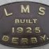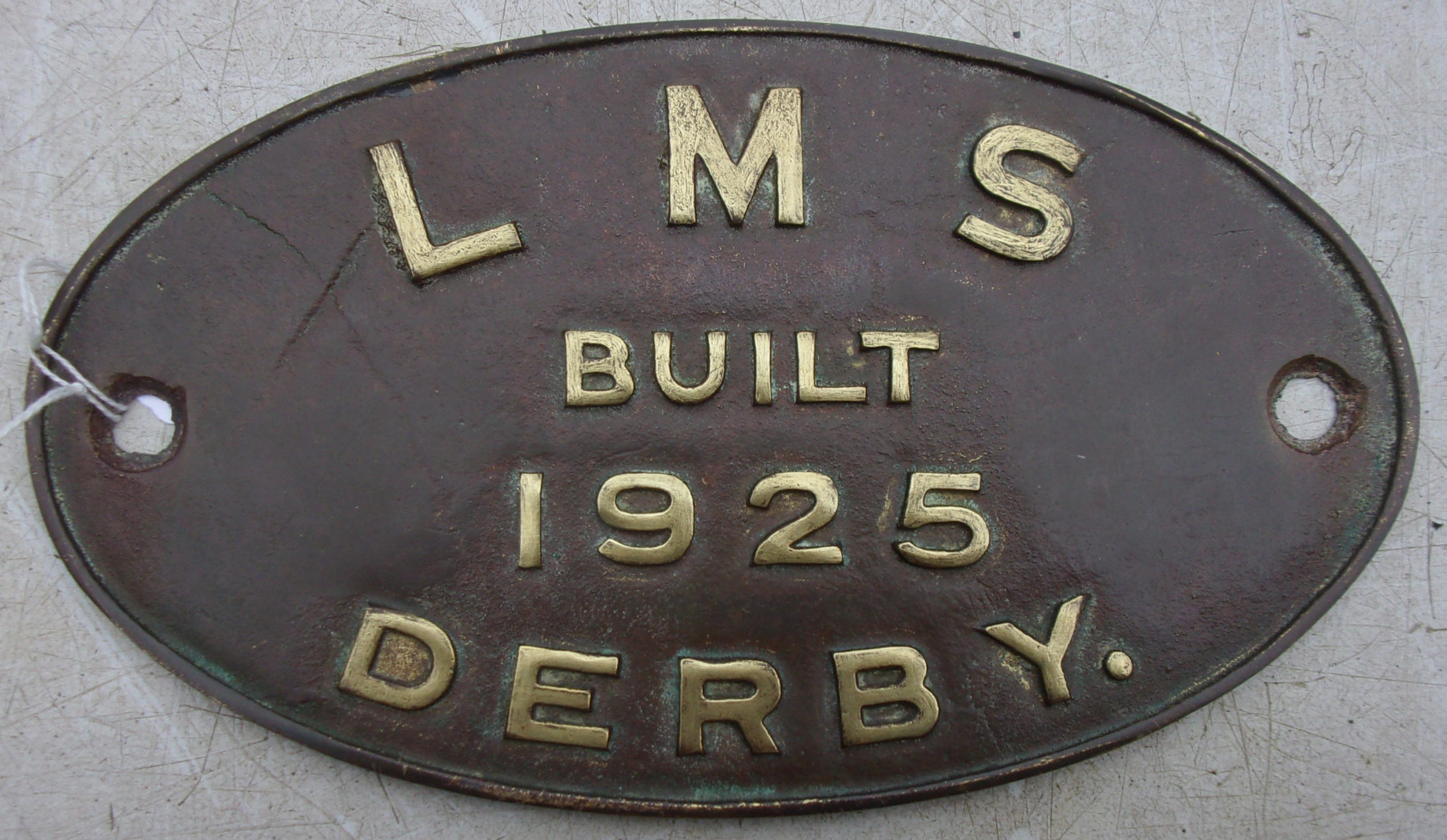 Locomotive Worksplate “LMS Built 1925 Derby”. Locos built this year were 40 x Fowler Class 4s. Cast brass, clean ex loco. 2 x pictures to view.