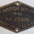 Locomotive Worksplate “North British Locomotive Company Ltd, Glasgow No. 25816 1946”, as carried by Thompson B1 Class Number 61060. Emerging to traffic in August 1946. Allocations included Neville Hill (New), Dairycoates, Grantham, New England, Lincoln. Withdrawn in September 1962. Repainted face, ex loco back. Embossed cast white brass, diamond shape.