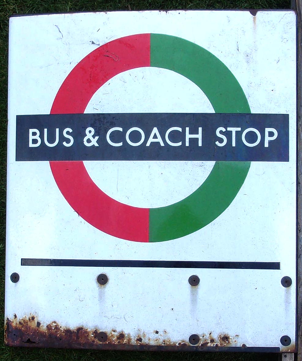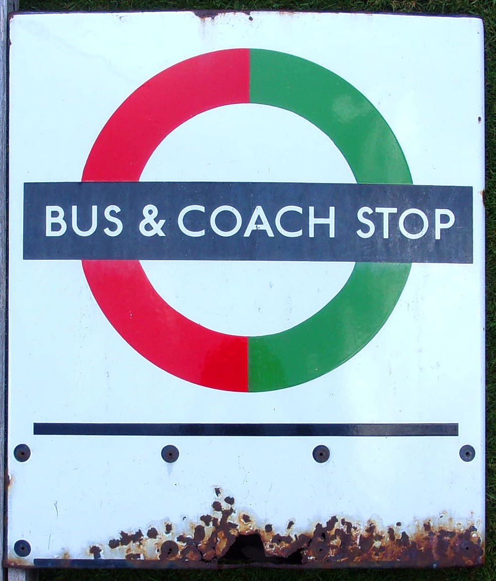 London Transport double sided Bus & Coach Stop, come loss to enamel at foot. 18″ x 21″. Good colour & shine. ( 2 x images to view)