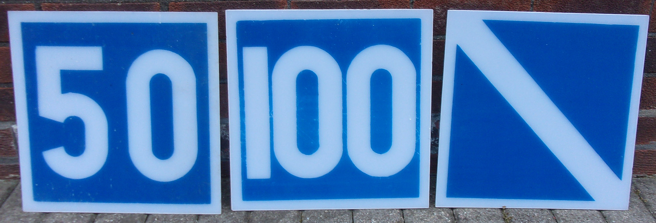 Modern Trackside Speed Notices in heavy plastic. v.g.c.