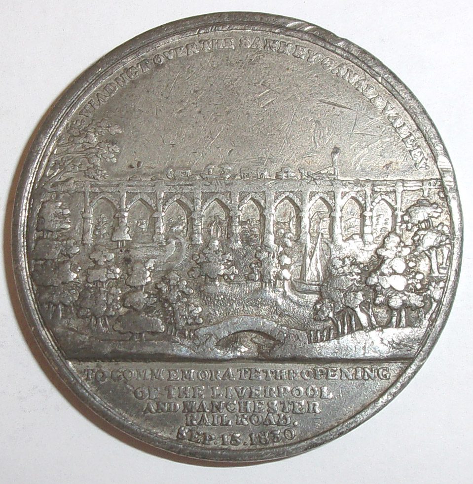 ORIGINAL PEWTER MEDAL, STRUCK FOR THE OPENING OF THIS WORLDS FIRST PASSENGER RAILWAY.