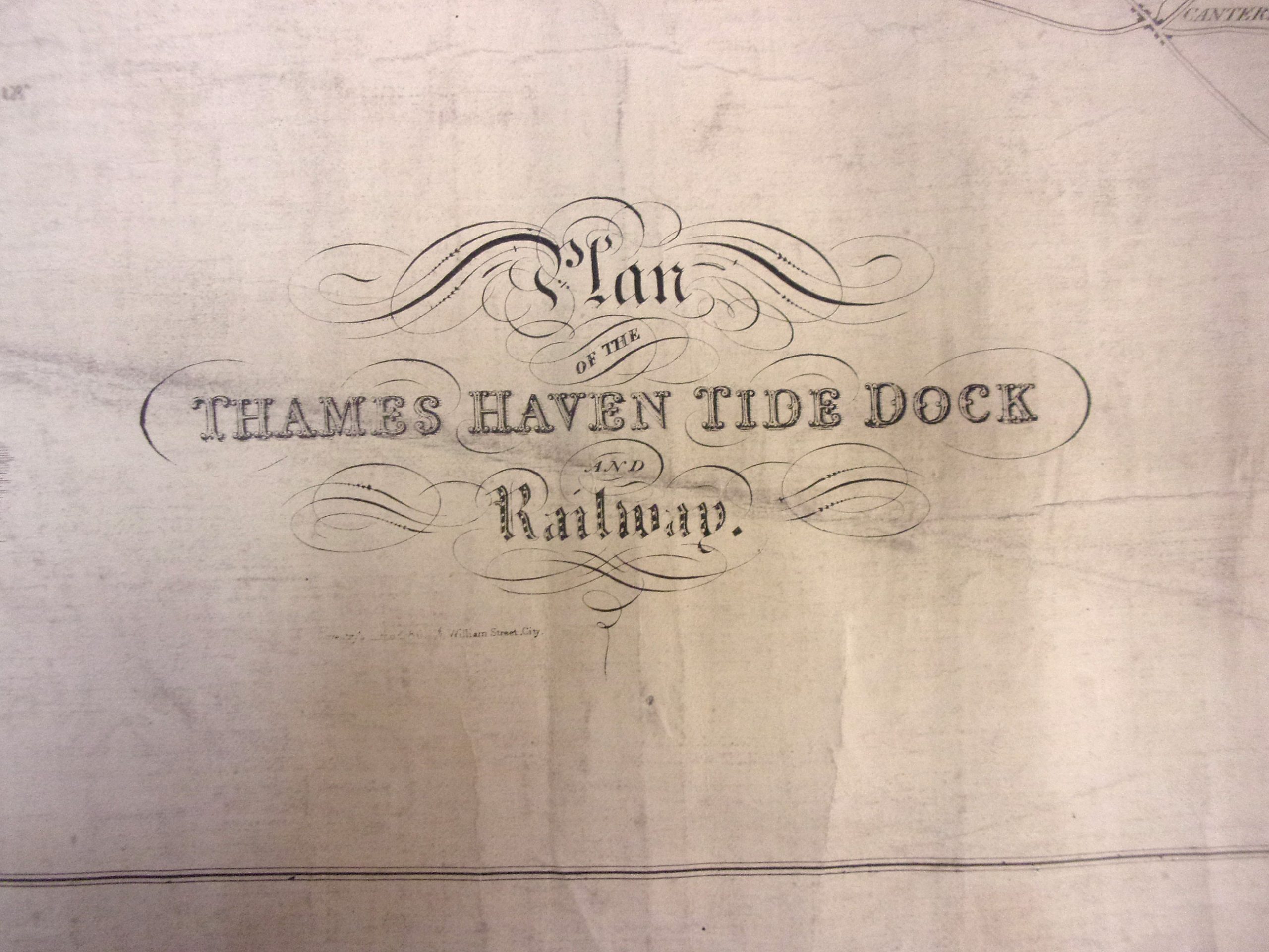 Plans of the Thames Haven Tide Dock and Railway embossed stamp for drawing office, bottom right hand corner, on linen. Victorian era. 30″ x 20″ ( 4 images to view)