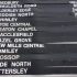 Quantity of Train Destination Labels, from Station Time Table Machine on flexible plastic. 30″ x 2 1/2″. v.g.c.