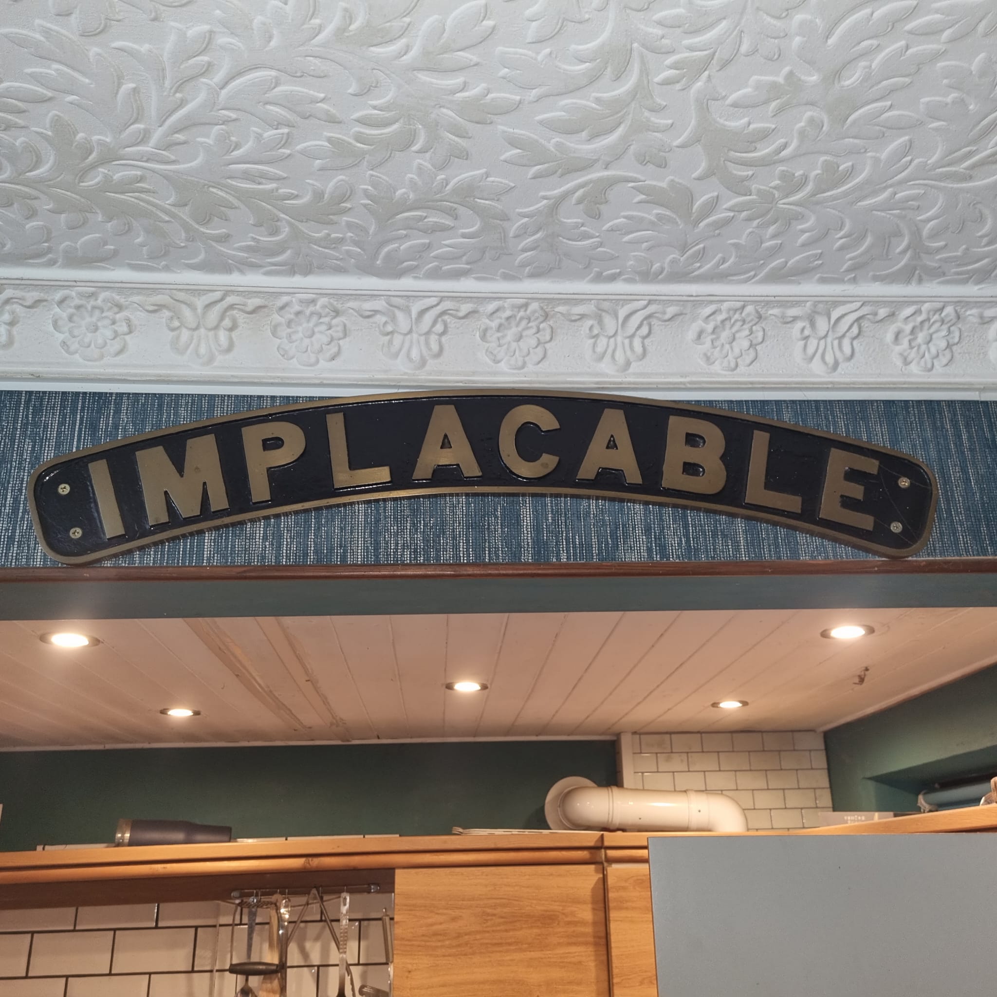 Replica Brass Nameplate “IMPLACABLE”, exact copy.