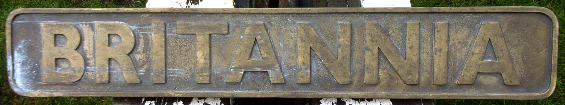 Replica Nameplate “BRITANNIA” copy of BR Britannia Class loco. Correct size. Heavy cast brass.